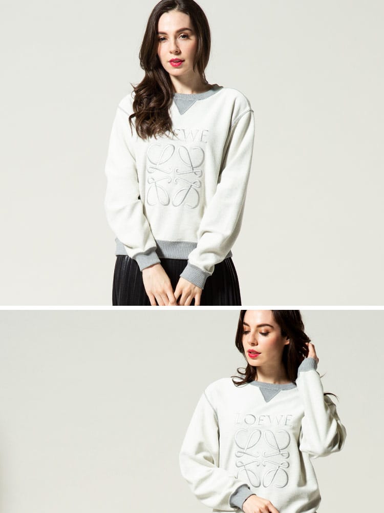 私、LOEWEが大好きなんです(笑) その中でも絶対欲しいおすすめの一着!!しっかりした刺繍がアクセント!!さらにリブ部分だけ濃いめのグレーなので、のっぺりしがちなトレーナーがお洒落着になるんです!フェミニンにスカートで着てもよし、ワイドパンツとスニーカーで合わせればトレンドのスタイル完成★入手困難なアイテムになりますので、再入荷はありません!お急ぎくださいませ! |