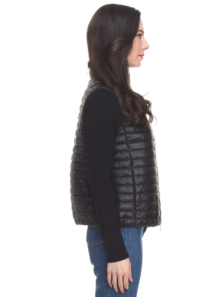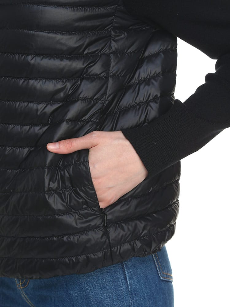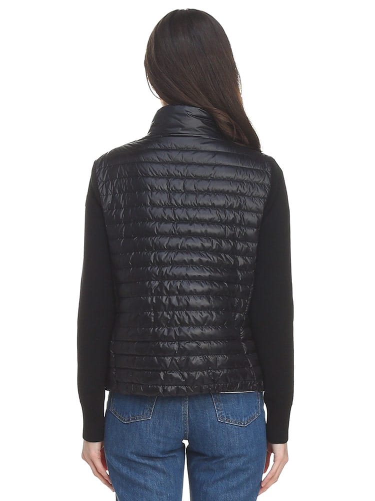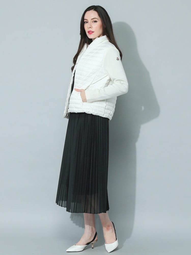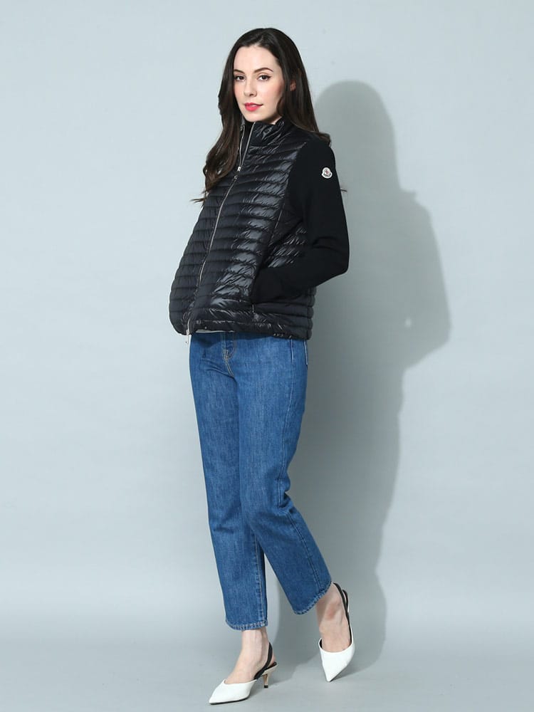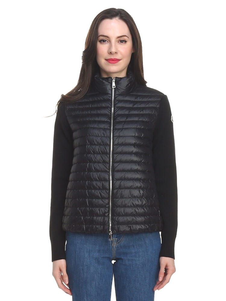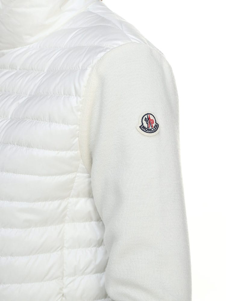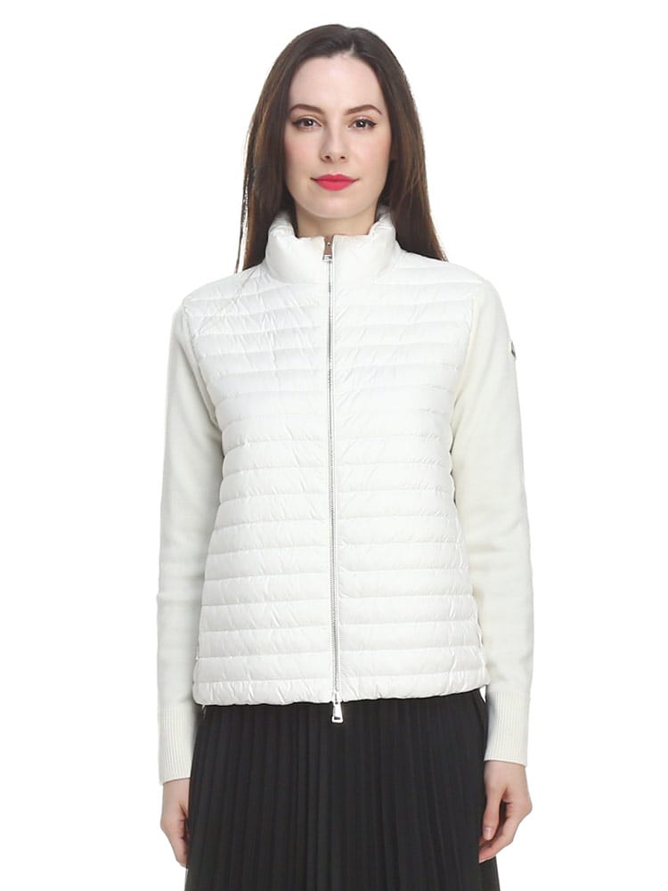 ウール素材を使用したカーディガンです。前面にはダウンパディング入りの薄手ナイロン素材を使用。ハイネックの軽量ニットで、ジップアップスタイルです。