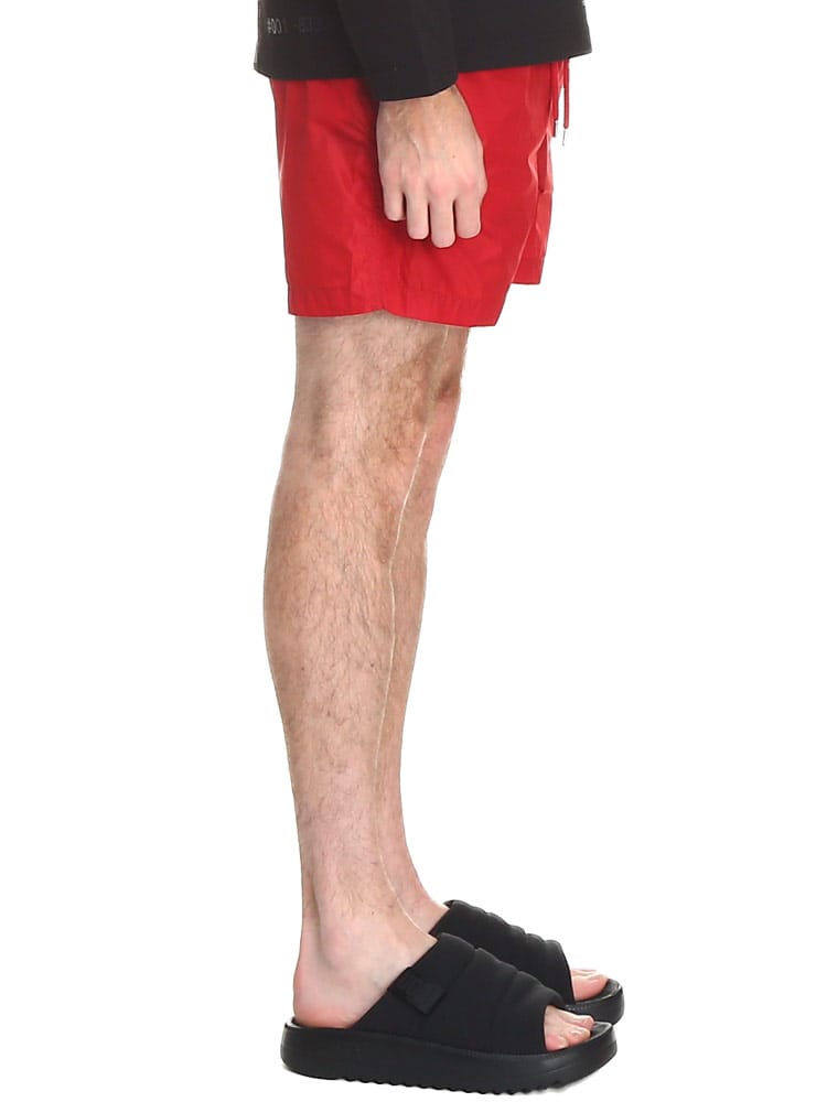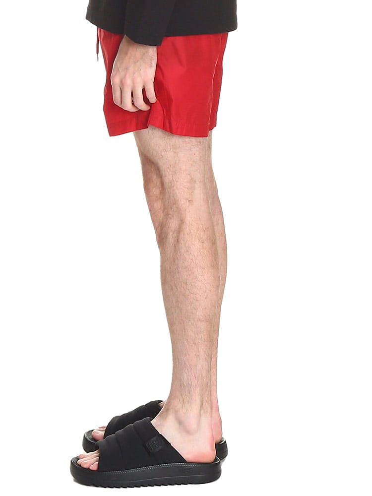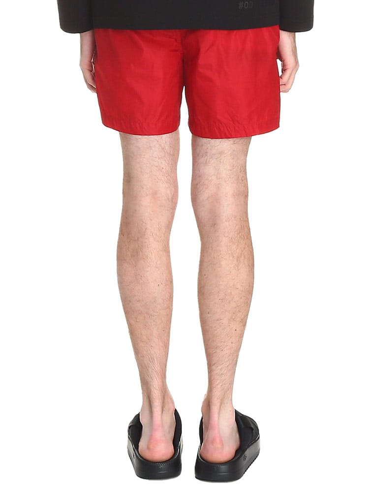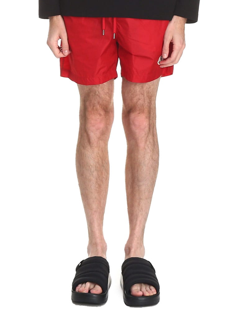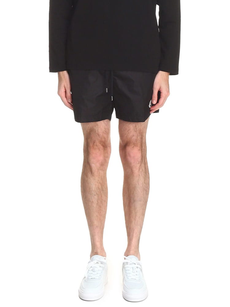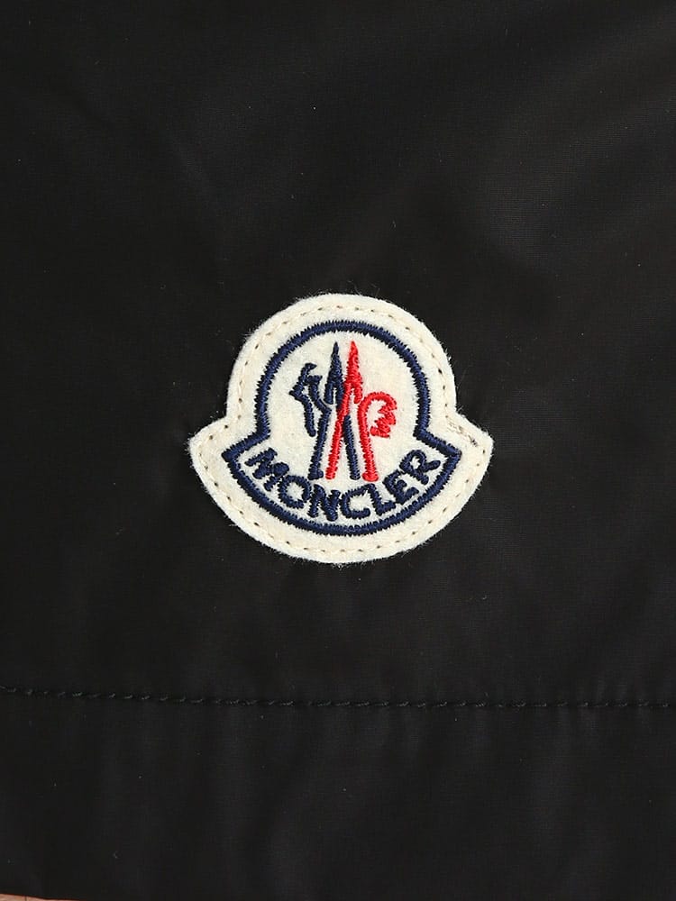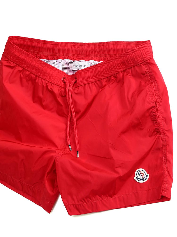 シンプルなシルエットのスウィムショーツです。フロント下にはモンクレールのロゴワッペン。バックポケットはジッパー開閉なので使い勝手のよいつくりに。ウエストゴムとドローコードで細かな調節が可能です。収納用のミニ巾着付き。