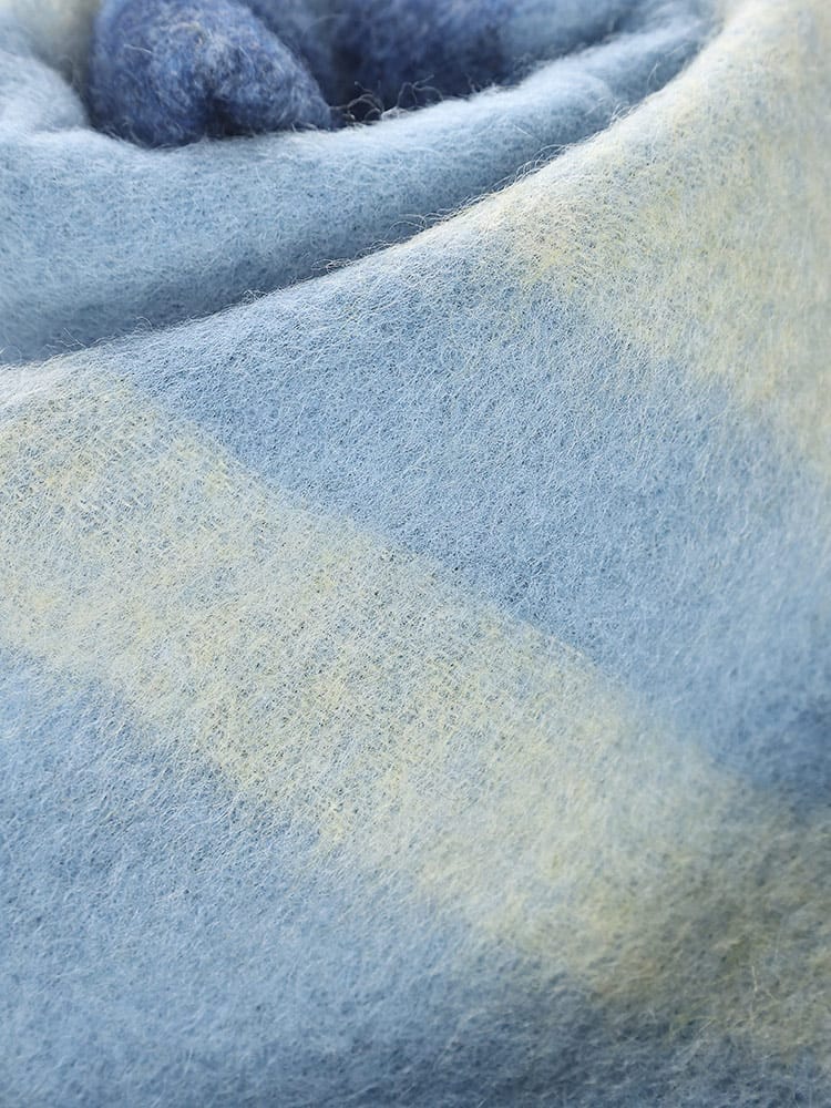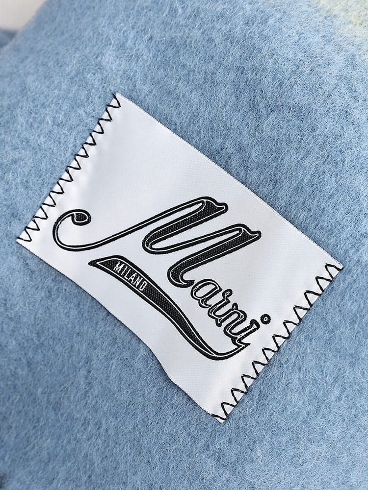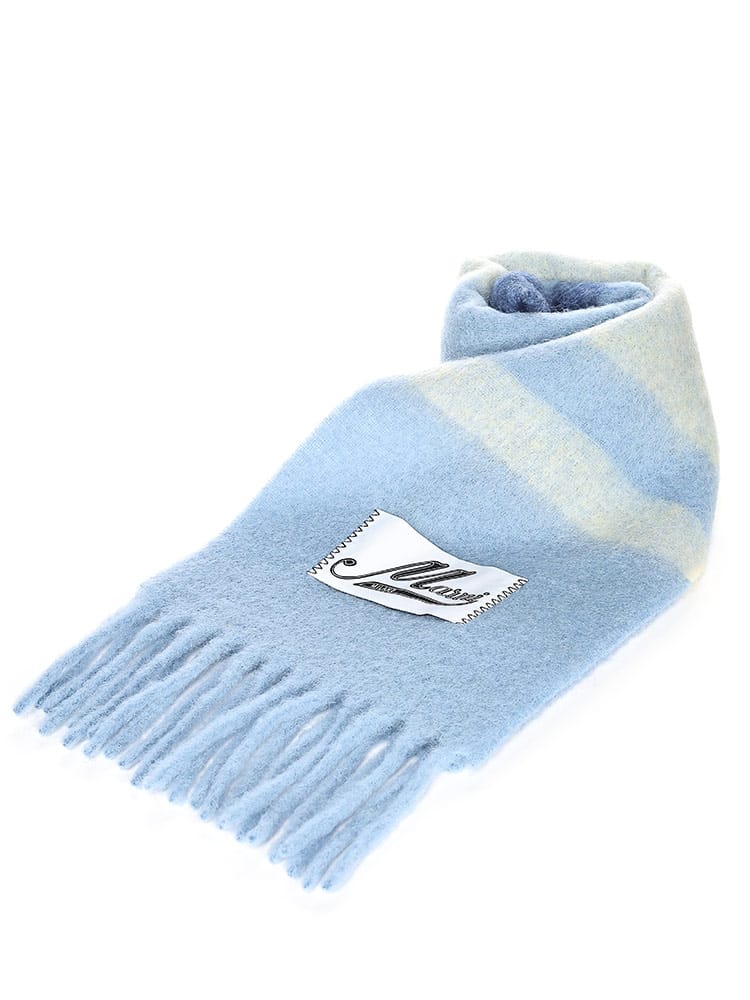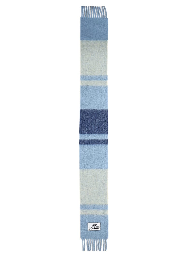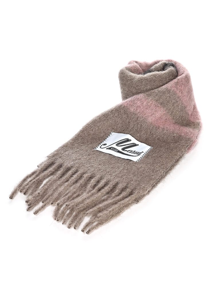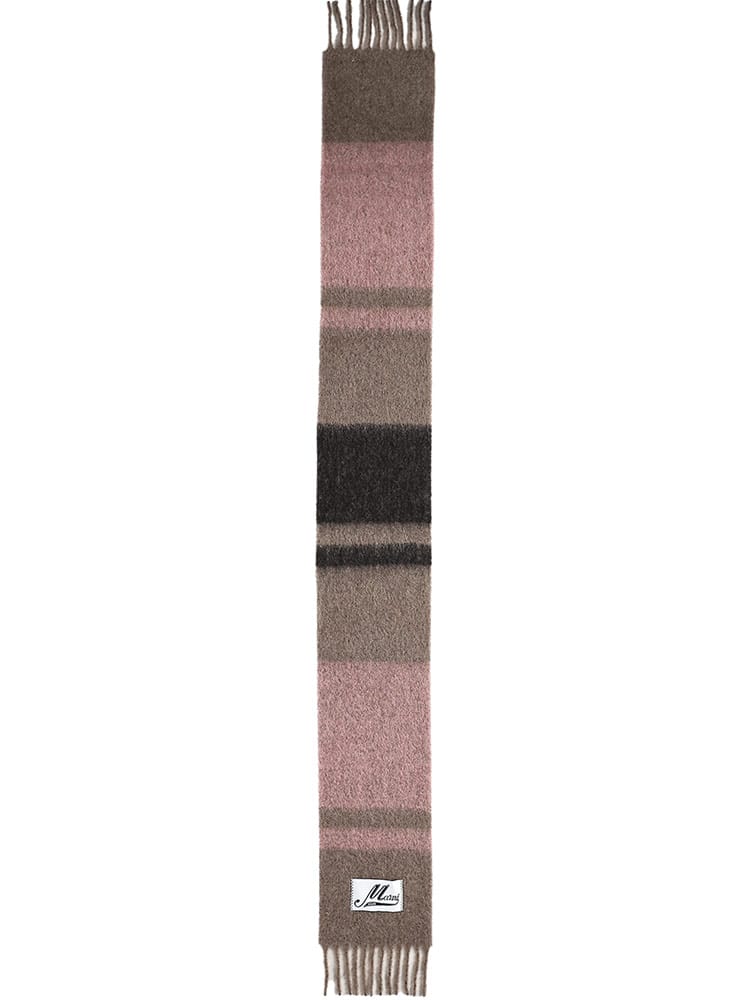 ブラッシュドモヘアとアルパカ混紡製のストライプスカーフ。端にマルニパッチ。トリムにタッセル。