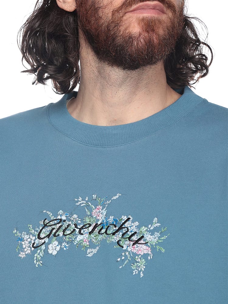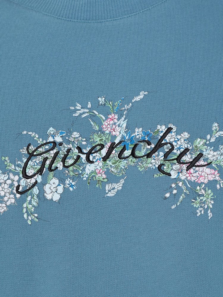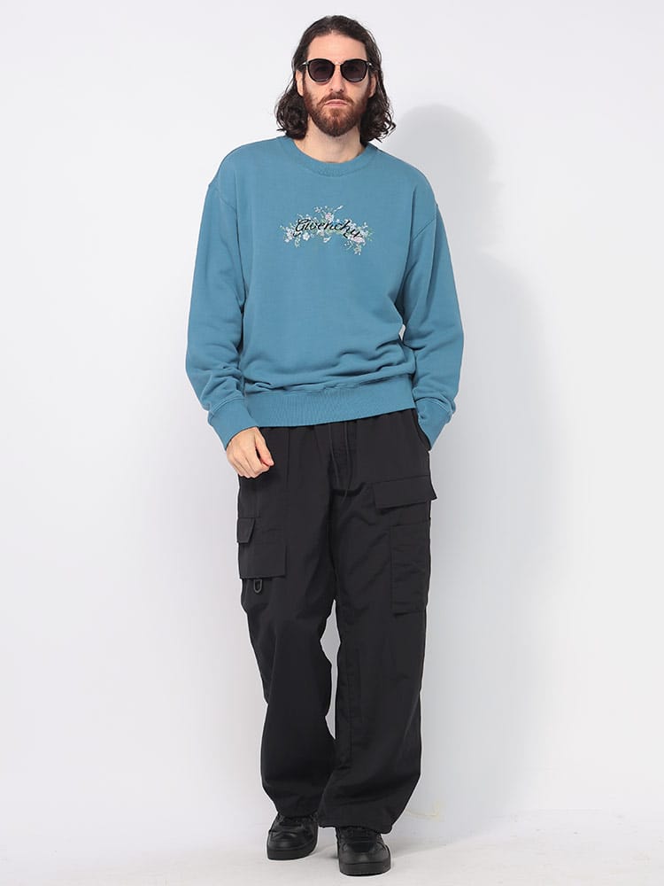 フロントにフラワープリントとGIVENCHYロゴ刺繍が施されたデザインが特徴の長袖スウェット。シンプルながらもエレガントなスタイルで、カジュアルから上品なコーディネートまで幅広く対応します。高級感あふれる一着です。