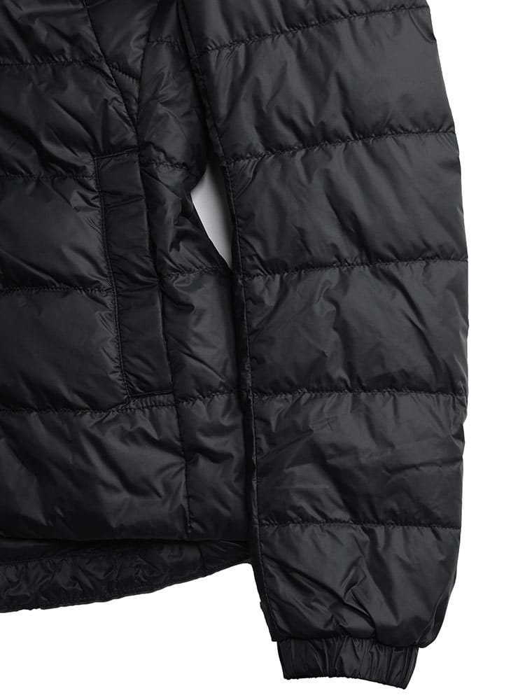<アボット フーディー>はあらゆるアウトドアアクティビティをサポートする汎用性の高い一枚。パッカブルになるため旅行にも便利です。ダウン入りのフードが着心地のよさを強化し、背中のリフレクターが暗闇で視認性を高めます。