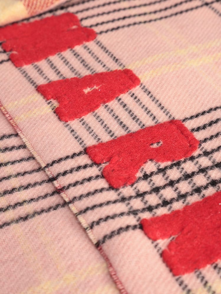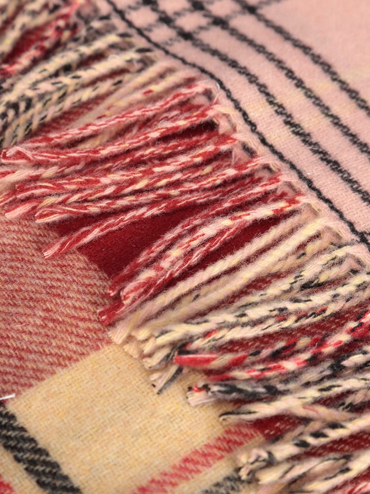 各サイドにコントラストチェックパターンをあしらったウール製マフラー。斬新なコントラスト マルニロゴ。トリムにタッセル。