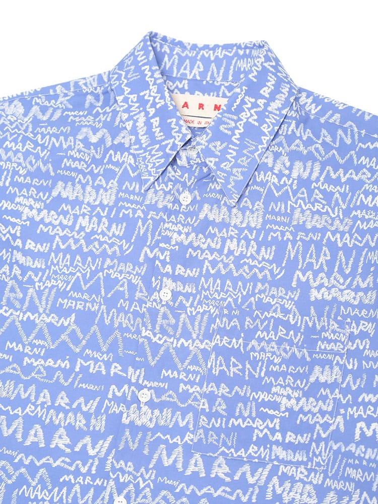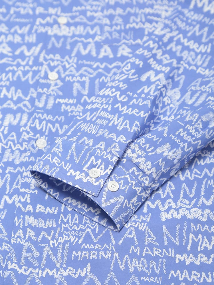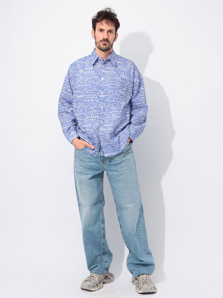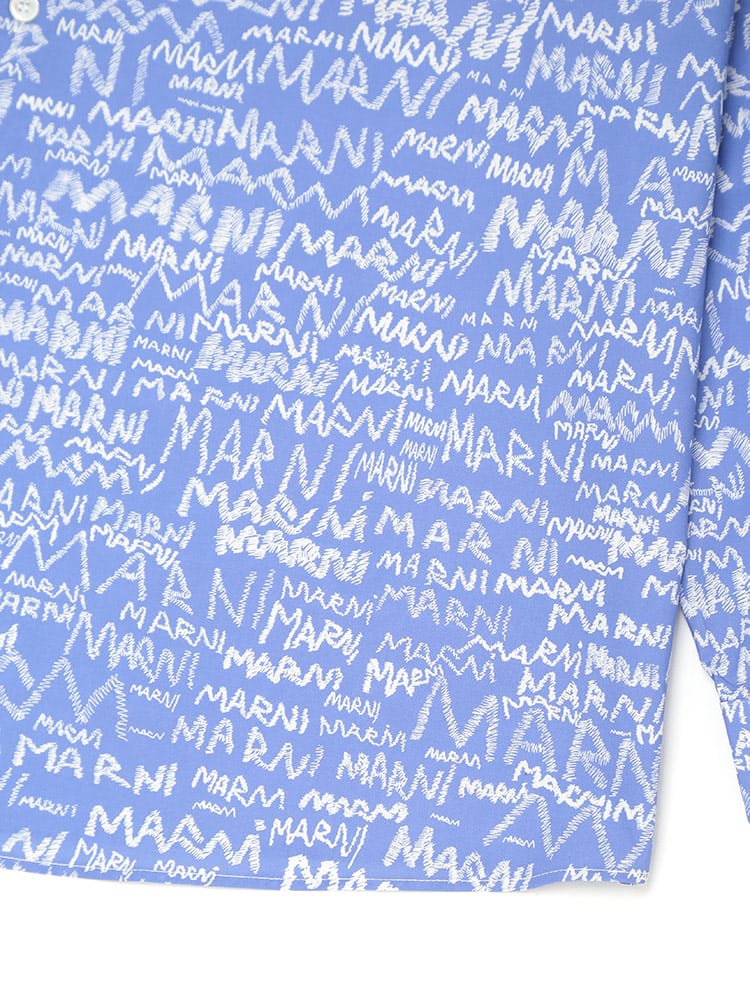 マルニらしい遊び心溢れる総ロゴが特徴的な長袖シャツです。上質なコットン素材を使用しており、柔らかな肌触り。ビジネスシーンからカジュアルな場面まで、幅広く活躍する一品です。