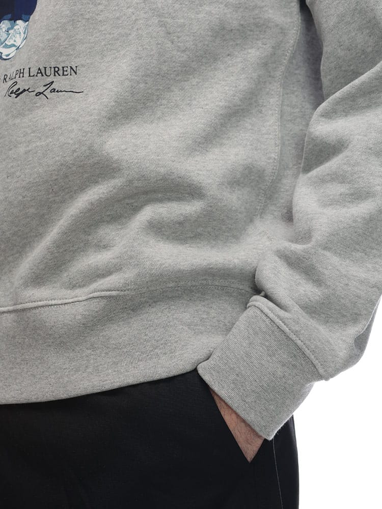 アイコニックなポロベアがサングラスをかけた、遊び心溢れるデザインが魅力的なトレーナーです。柔らかなコットン混素材を使用し、快適な着心地を実現。カジュアルスタイルにぴったりのアイテムで、デニムやチノパンとの相性も抜群。フロントに大きくプリントされたポロベアが、コーディネートのアクセントになります。