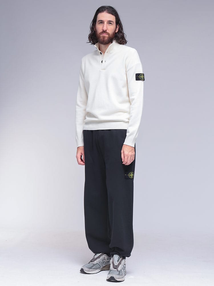 ブランドの持つミリタリーとワークの要素を融合させたハーフボタンニットセーターです。上質な素材を使用することで、快適な着心地と耐久性を両立。特徴的なハーフボタンのデザインは、着こなしの幅を広げ、単体での着用はもちろん、シャツとのレイヤードスタイルも楽しめます。左腕にはお馴染みのコンパスロゴパッチが配され、ストーンアイランドならではのアイデンティティを主張。
