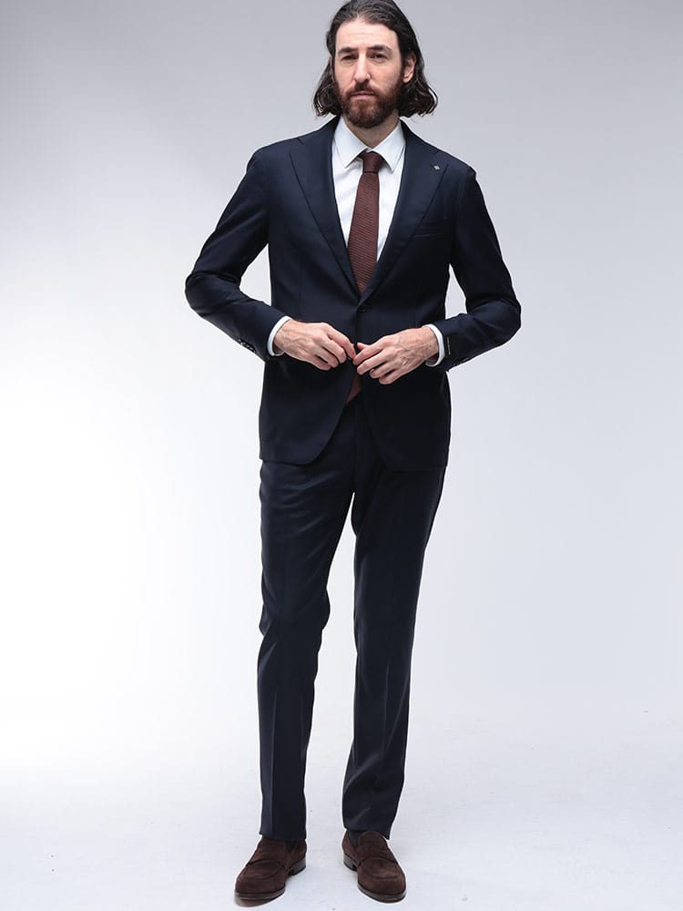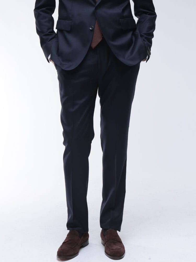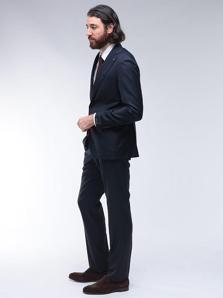 洗練された大人の男性にふさわしい、無地のシングルスーツが登場。上質なウールを100%使用した表地は、しなやかでドレープが美しく、エレガントな光沢を放ちます。タリアトーレならではの計算し尽くされたシルエットは、身体のラインを美しく見せ、着る人の魅力を引き立てます。ノータックのパンツは、すっきりとシャープな印象。ビジネスからフォーマルまで、あらゆるシーンで自信と品格を与える一着です。
