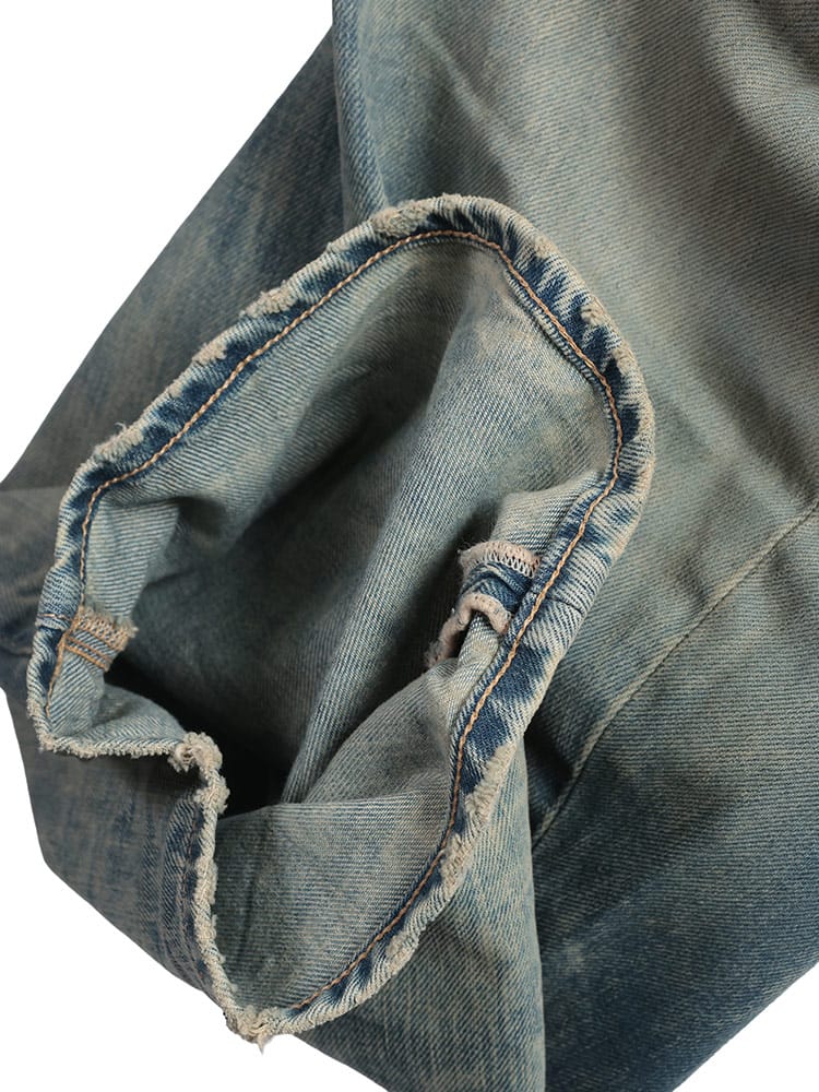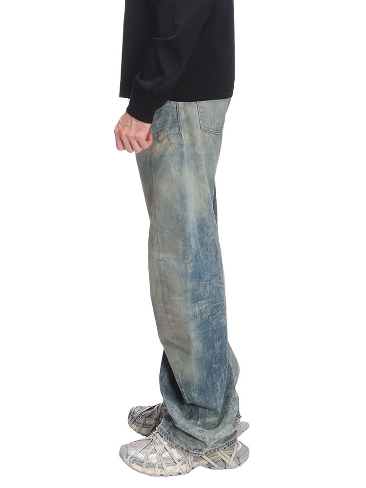 上質なコットン100%のデニム生地は、穿き込むほどに体に馴染み、独自の風合いを増していきます。ゆったりとしたワイドレッグとルーズフィットのシルエットが、今どきのストリートスタイルを完成。バックポケットには、ブランドの象徴であるピンクのステッチが施され、さりげなくも確かな存在感を放ちます。細部にまでこだわった、ワードローブに欠かせない一本です。