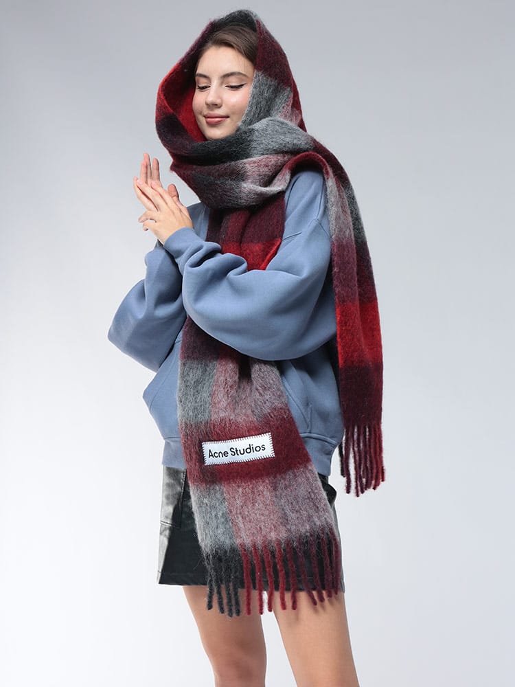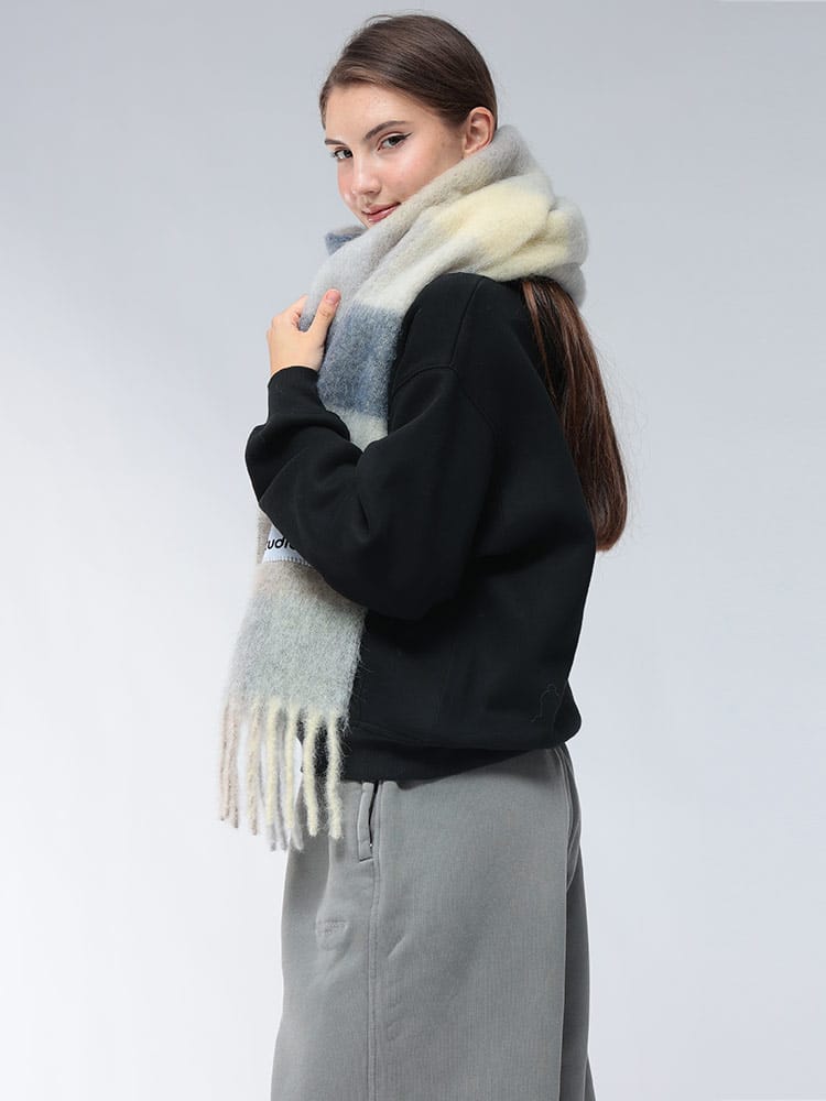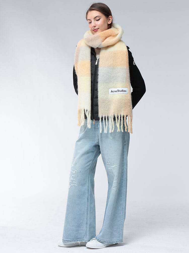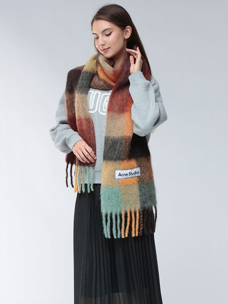 ふんわりと柔らかな肌触りで、暖かく首元を包み込むモヘヤ混マフラー。落ち着いたチェック柄がコーディネートに上品なアクセントを加えてくれます。シンプルながらも存在感があり、秋冬のスタイルを格上げしてくれるアイテムです。