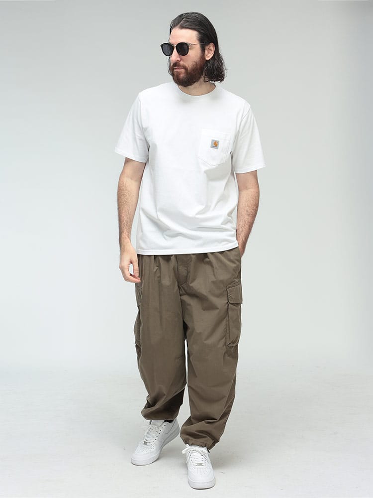 タフさと洗練の融合。永遠の定番「ポケットTシャツ」。ワークウェアの伝統をモダンに再構築するCarhartt WIP(カーハートWIP)から、世界中で愛され続ける至高のベーシックアイテムが登場。最大の魅力は、ブランドのアイデンティティを象徴する左胸のスクエアラベルです。タフなポケットの上に配されたそのロゴが、シンプルな無地Tシャツに確かな存在感を与えています。素材には、ドライな肌触りと耐久性に優れた上質なコットン100%を採用。厚みのあるしっかりとした生地感は、繰り返しの洗濯でも型崩れしにくく、着込むほどに肌に馴染むワークブランドならではの経年変化を楽しめます。程よくゆとりのあるルーズフィットなシルエットは、ストリートからカジュアルまで幅広いスタイリングに対応。1枚で主役を張る力強さと、インナーとしての汎用性を兼ね備えています。時代に流されない普遍的なデザイン。ワードローブの「核」として、長く連れ添いたいマスターピースです。