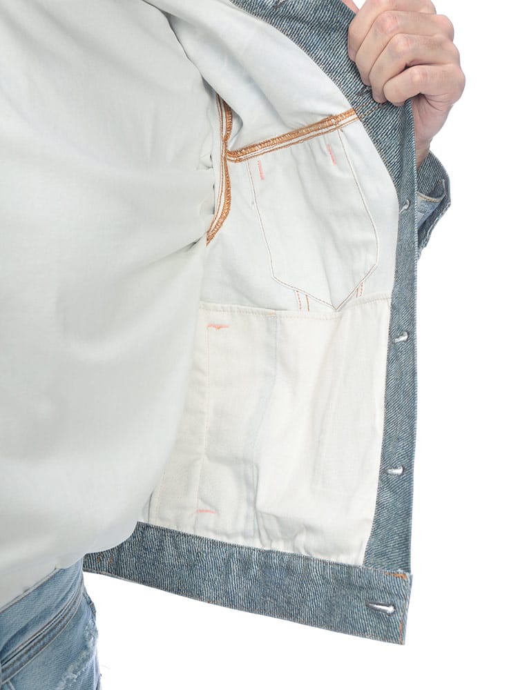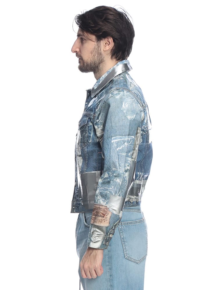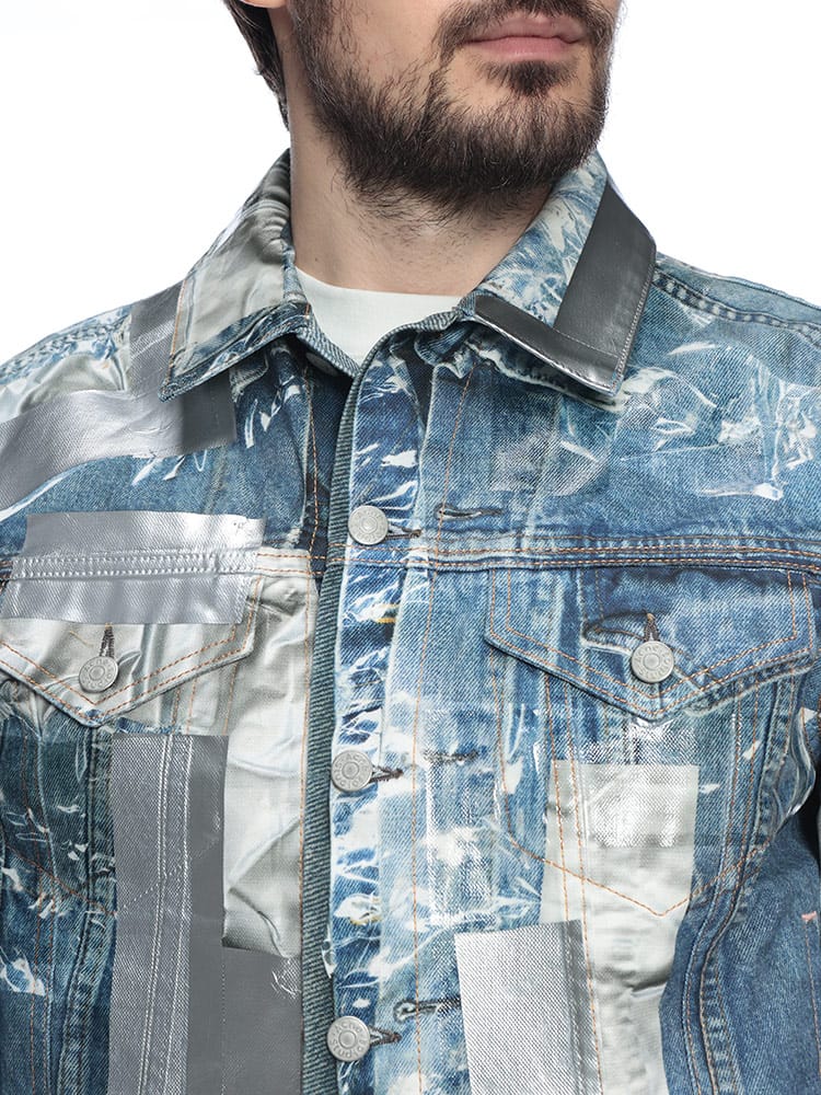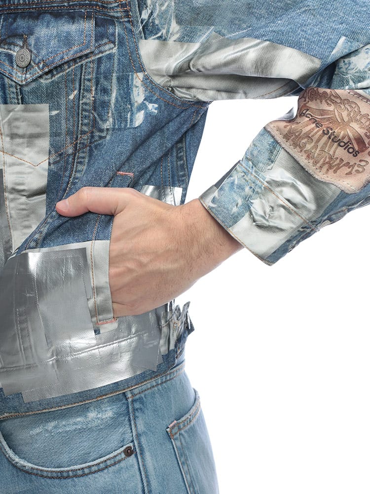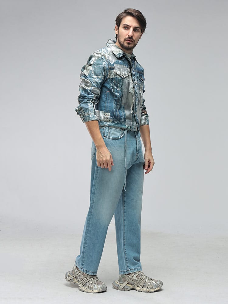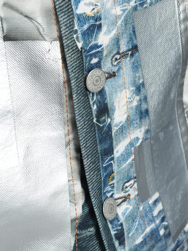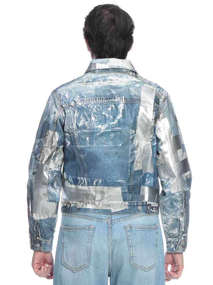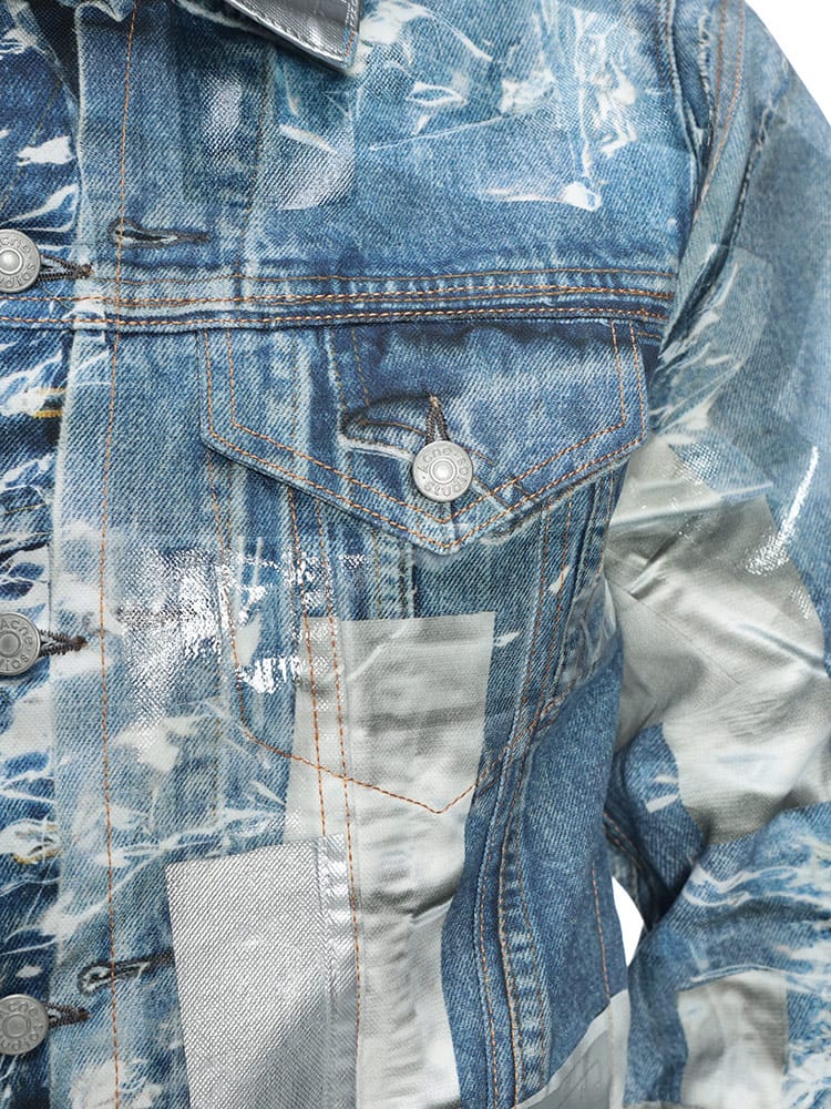北欧スウェーデン発のAcne Studios(アクネストゥディオズ)から、独創的な遊び心とハイエンドな技術が融合した「トロンプルイユ(だまし絵)」メタリックデニムジャケットが登場。高品質なコットン100%のデニムをベースに、精密なプリント技術を駆使して表現されたメタリックな質感が、これまでのGジャンの概念を覆すフューチャリスティックな輝きを放ちます。ヴィンテージデニムのディテールをデジタルプリントで再現しつつ、光の反射まで計算されたデザインは、一見すると金属のような重厚感を醸し出しながらも、布帛ならではの軽やかで快適な着心地を両立。機能的な4つのポケットを備え、春や秋のライトアウターとして圧倒的な存在感を放ちます。ストリートをモードへと昇華させる、現代アートのような至高の一着です。
