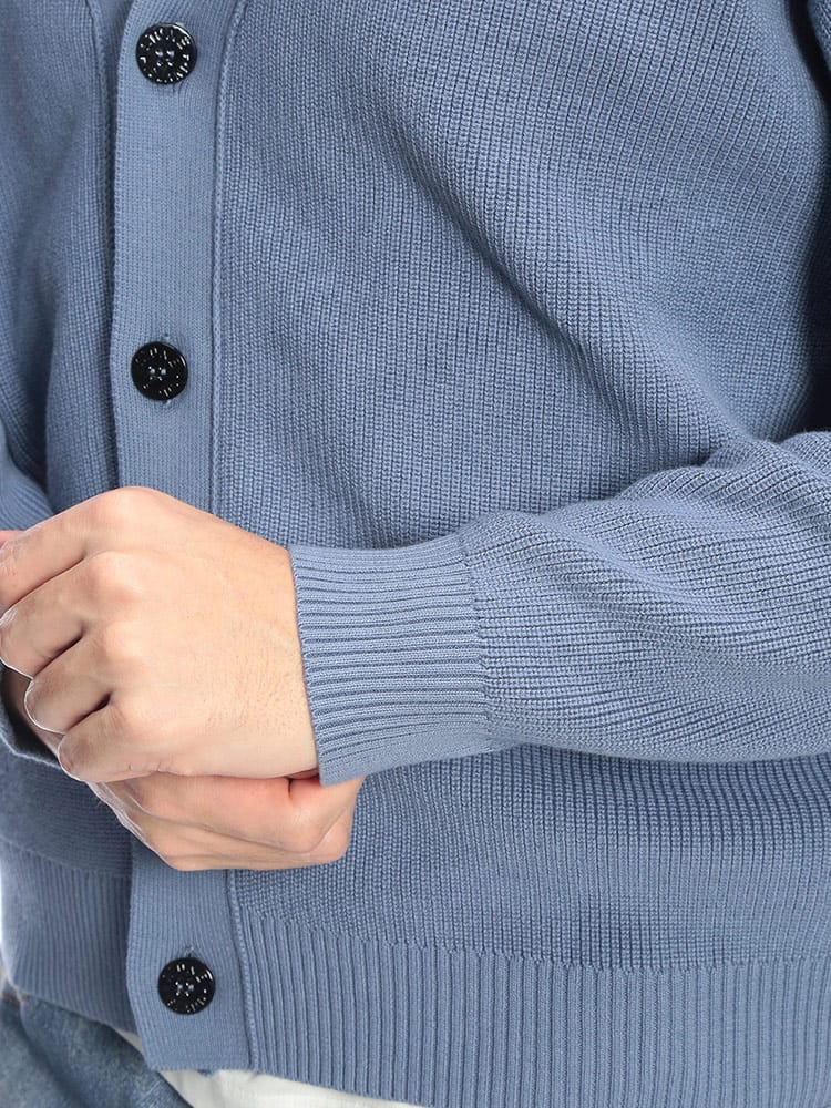 革新的なガーメントダイと機能美が融合した、環境に配慮したオーガニックコットン素材の長袖Vネックカーディガン。厳選された「RIBBED SOFT ORGANIC COTTON」を採用し、表情豊かなリブ編みが体に優しくフィットする極上の着心地を実現しました。左袖にはブランドの象徴であるコンパスローズのロゴワッペンを配し、ミリタリー由来のタフさとラグジュアリーな気品を両立。深すぎない絶妙なVネックラインは、シャツやTシャツとのレイヤードもスマートに決まります。春や秋のライトアウターとして、また冬のインナーとしても通年で活躍。ミニマルなデザインの中に宿る圧倒的な存在感が、大人のカジュアルスタイルを都会的に格上げする至高の一着です。