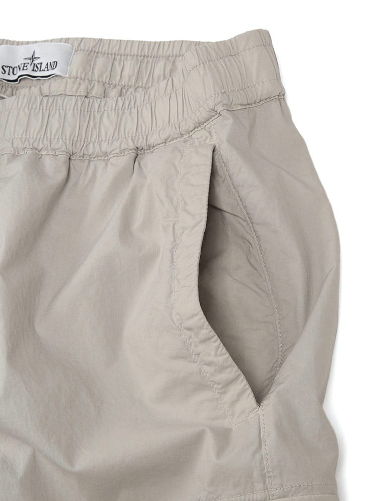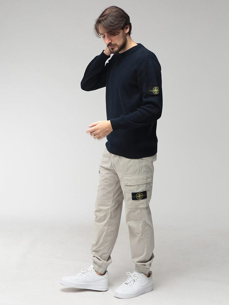 ストーンアイランドの独創的な機能美と、現代的なテーラリングを融合させた「ストレッチコットンテーラ」素材のカーゴパンツです。耐久性に優れた高品質なコットンをベースに、適度なストレッチ性を加えた独自のテラ素材を採用。驚くほど軽やかで動きやすく、ストレスフリーな穿き心地を実現しました。ガーメントダイ(製品染め)加工を施すことで、深みのある独特な色合いと、こなれたヴィンテージのような風合いを表現。サイドに配された立体的なカーゴポケットと、象徴的なコンパスパッチが、無骨なミリタリースタイルに都会的で洗練されたエッセンスを添えています。