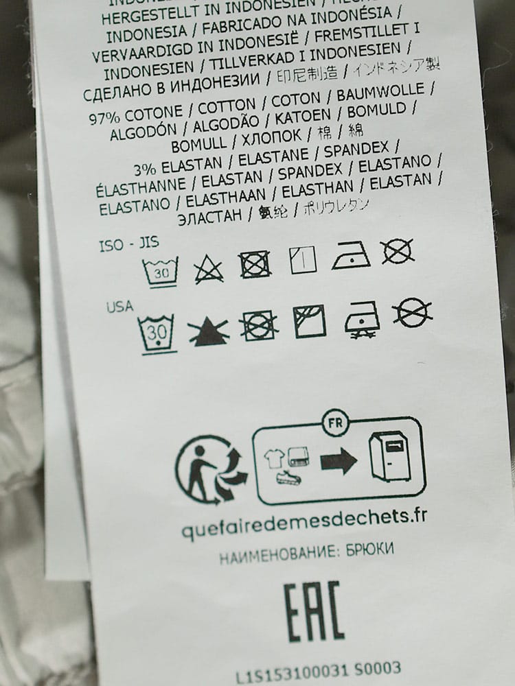 仕様 :外側ポケット数×5つ / ジップフライ / ウエストゴム / ウエストドローコード
