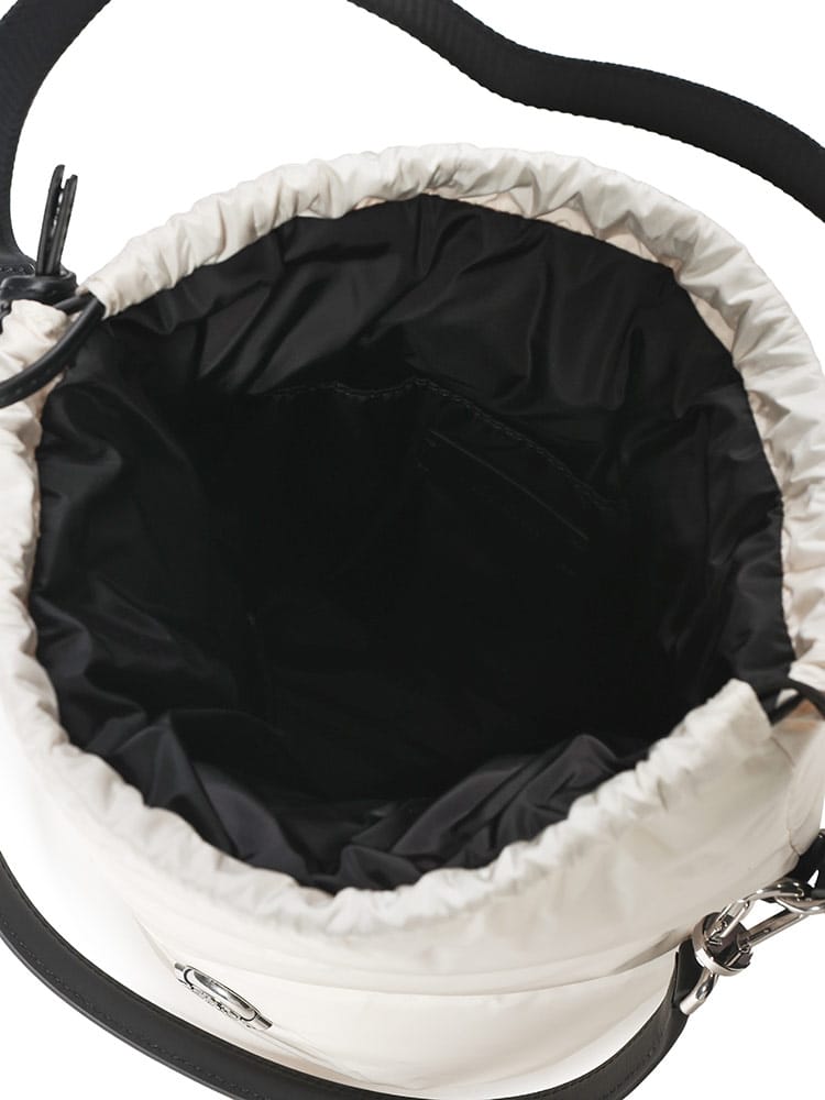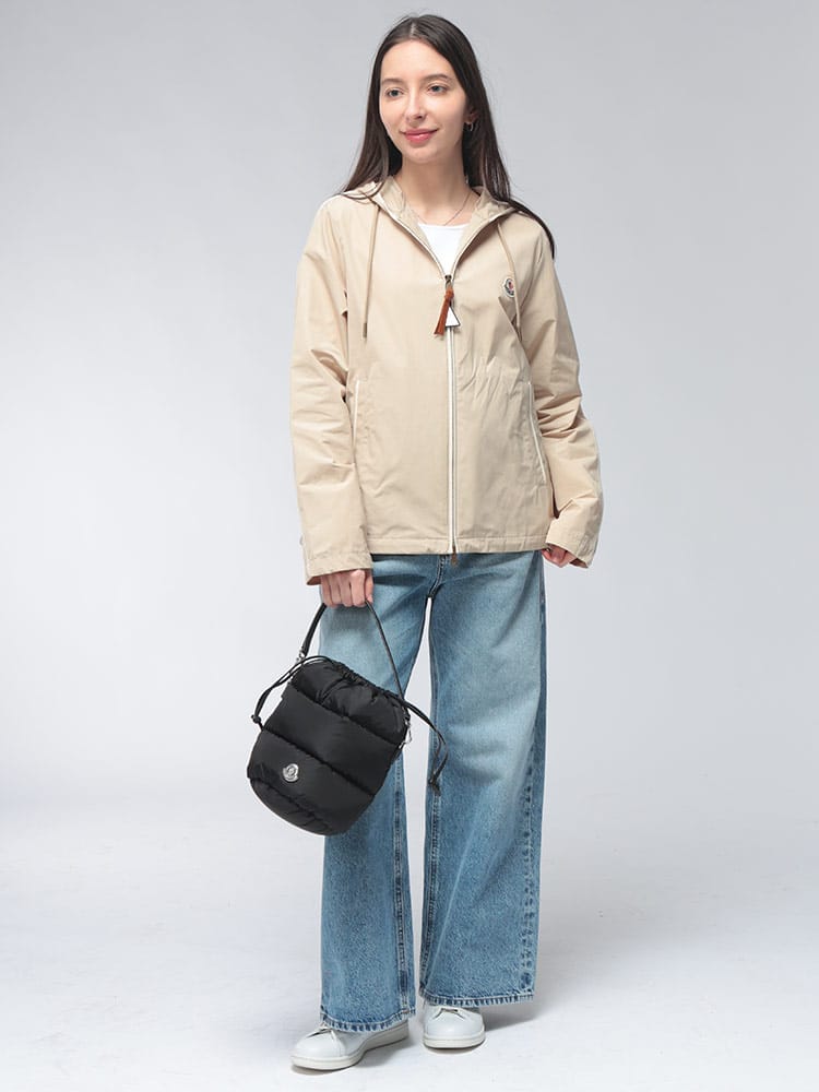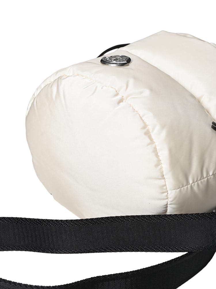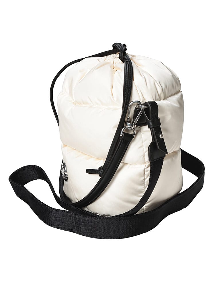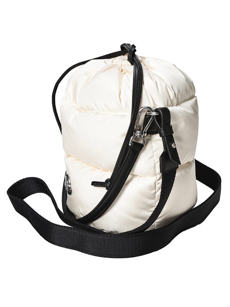 MONCLERのアイコニックなダウンパディングを纏った「CARADOC」バケットバッグは、撥水素材を使用した機能的なミニバッグです。丸みのある愛らしいフォルムに、ブランドロゴが映える洗練されたデザインが魅力。手持ちのハンドバッグとショルダーの2WAY仕様で、日常から旅行まで幅広く活躍します。冬の装いにラグジュアリーな軽やかさを添える、実力派の逸品です。