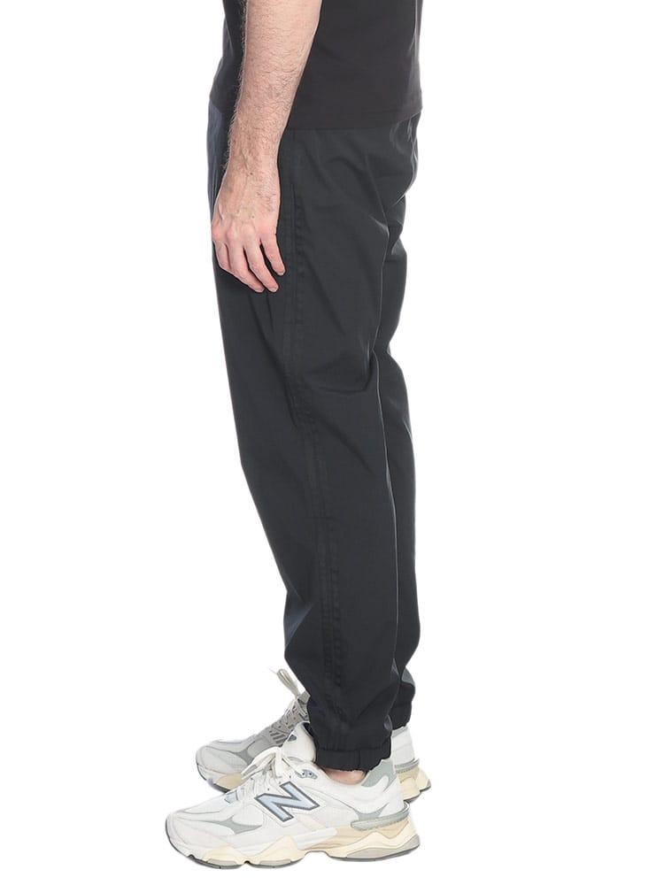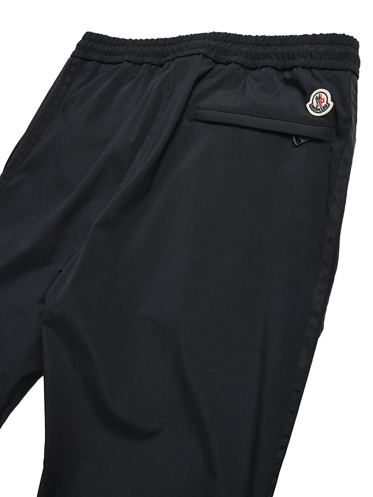 MONCLERの機能美と都会的な感性が融合した、サイドライン入りナイロンパンツ。ストレッチの効いたテクニカル素材が、アウトドアの機動力と街着の洗練さを両立します。印象的なサイドラインがスポーティーな躍動感を演出し、裾ゴム仕様が足元をスマートに強調。ウエストゴムとドローコードで快適な穿き心地を実現し、アクティブな休日をラグジュアリーに格上げする、ブランドの矜持が詰まった至高の一本です。