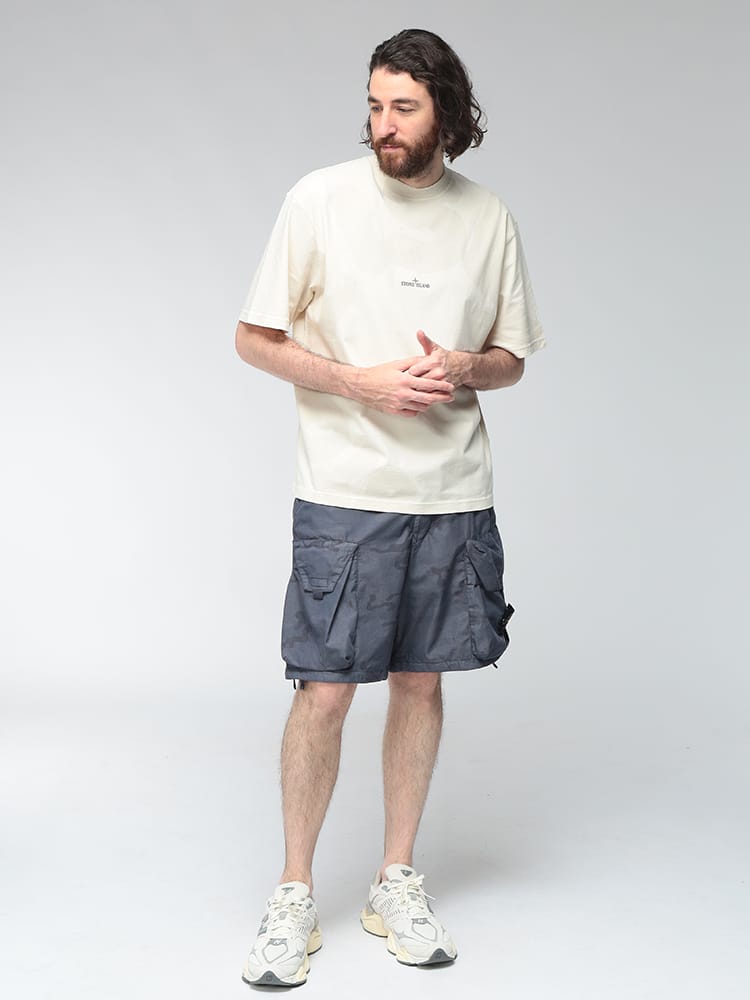 ブランドの真骨頂であるFADED CAMO柄が印象的な一着。独特の風合いが洗練されたミリタリースタイルを完成させます。機能面ではウエストと裾のドローコードでシルエット調整が可能。4つのポケットが収納力を発揮し、タウンユースからアウトドアシーンまで幅広く対応します。リラックスした穿き心地と都会的なシルエットが融合し、夏の装いをアップデート。ブランド独自の染色技術で表現された独特の表情が、シンプルなトップスと合わせるだけでコーディネートを格上げします。妥協のないモノ作りと機能美を追求したこのショーツで、ストーンアイランドの世界観をぜひ体感してください。