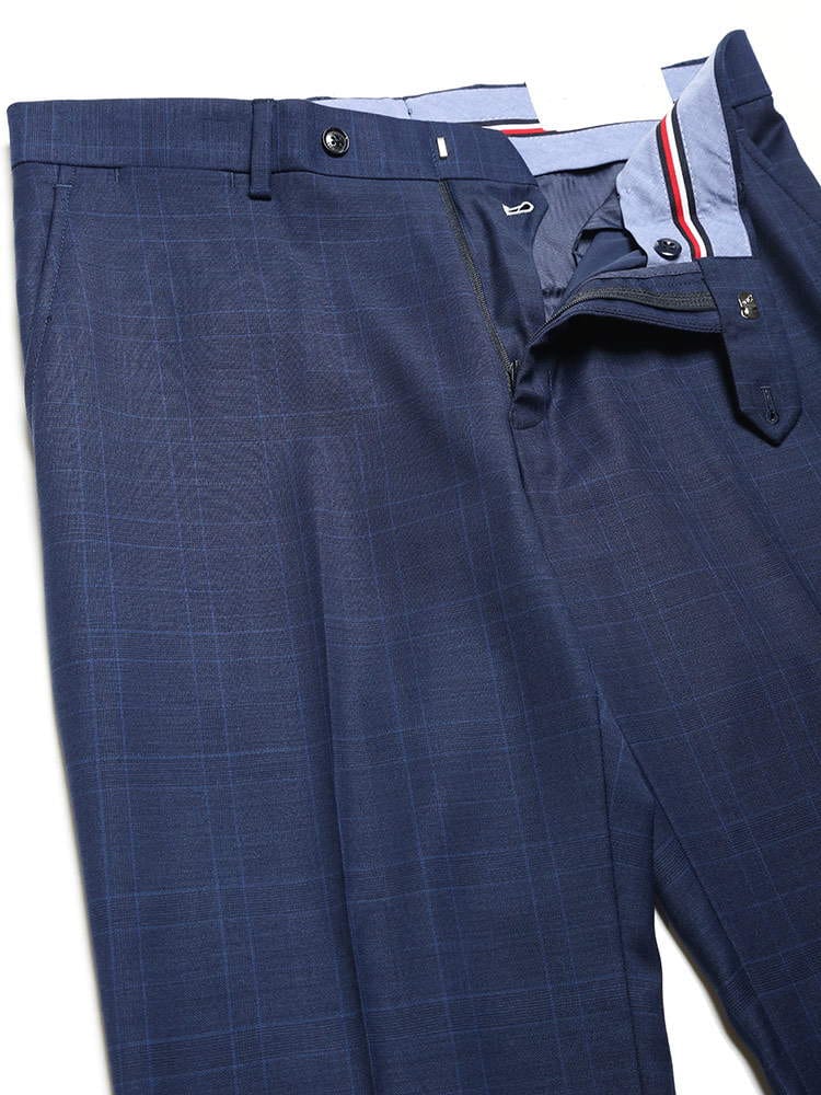 ・品のあるグレンチェックデザインのストレッチ シングル 2ツ釦 ノータック スーツ