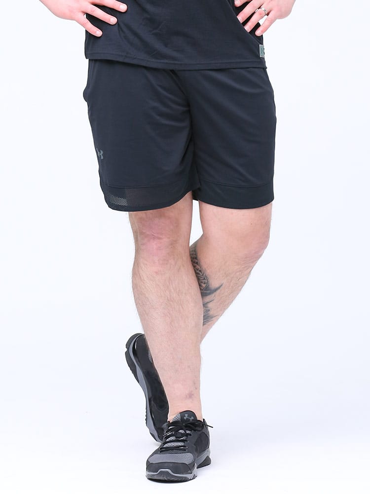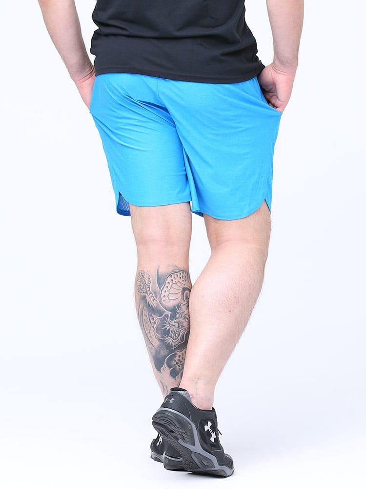 ゆったりと着用するタイプ。長時間におよぶトレーニングや移動時など、幅広いシーンに対応するリラックスモデル。裾メッシュデザインが特徴的な前閉じ ショートパンツ。右裾にロゴ。ウエストはゴムとドローコード付きでサイズ調整が可能です。アクティブウェアにおすすめ。