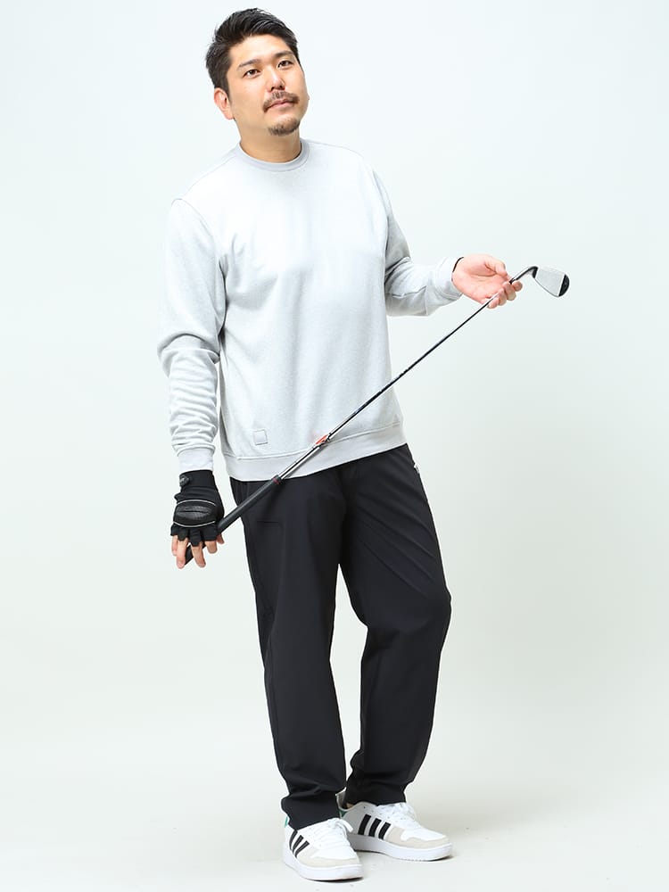 ゴルフウェアに最適なadidasのクルーネック プルオーバーです。首元はベーシックなクルーネックデザイン。リサイクルポリエステルを使用しています。袖はリブデザイン。フロント右裾にブランドタグが付いています。