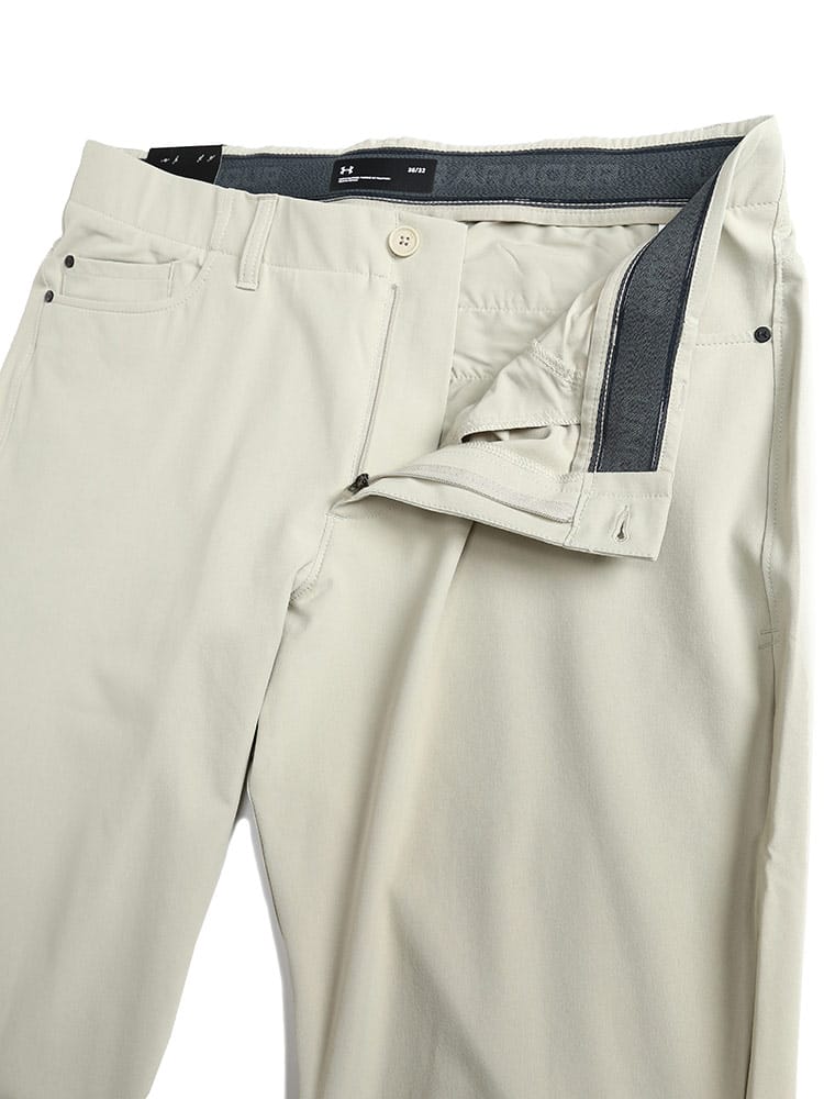 撥水加工により悪天候でもドライで快適。アンダーアーマーのSTORM ストレッチ 無地 ゴルフパンツ です。4WAYストレッチ構造で、全方向への動きをサポートします。ストレッチ性を追求したウエストバンドで、卓越した動きやすさと究極の快適性を実現。