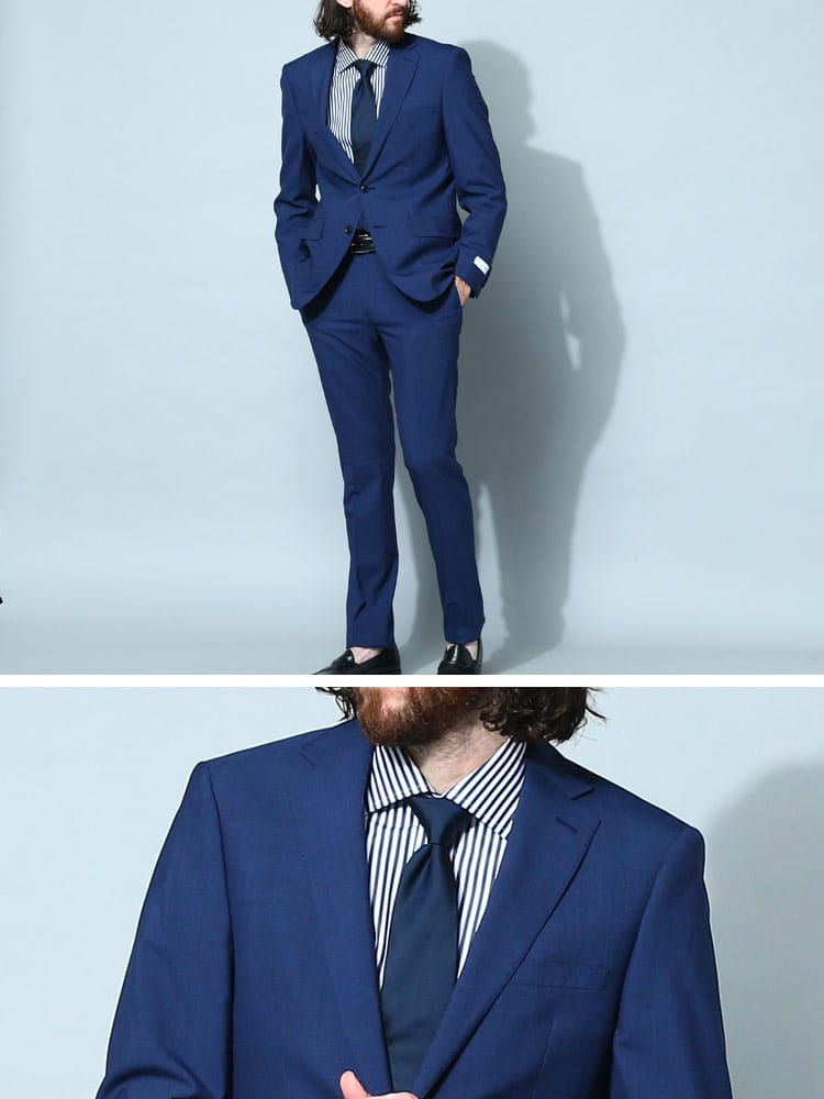 仕様 :ジャケット外側ポケット数×3つ / 内側ポケット数×3つ / パンツ外側ポケット数×4つ / シングル2つボタン / 総裏 / サイドベント / セッパタイプ / 額縁あり / ノータック