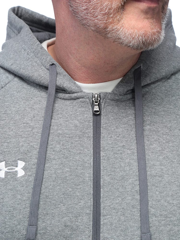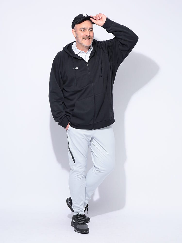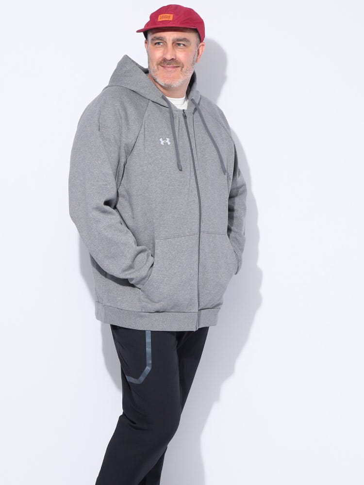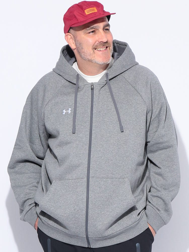 着回し力抜群のUNDER ARMOURのフルジップパーカー。柔らかなコットンブレンド素材を使用し、軽くて暖かい着心地を実現。裏起毛になっているため、優れた保温性を発揮し、寒い季節も快適に過ごせます。シンプルながらも洗練されたデザインは、スポーツシーンからデイリーユースまで幅広く活躍します。胸元のワンポイントロゴが、さりげないブランドアピール。一枚で着るのはもちろん、TシャツやロンTの上に羽織るだけで、こなれたスタイルが完成します。フルジップ仕様なので、気温の変化に合わせた着脱も簡単です。ゆったりとしたルーズフィットシルエットは、体型を気にせずリラックスして着られるのが嬉しいポイント。ジップ付きのサイドポケットは、小物の収納にも便利です。機能性とファッション性を両立した、あなたのワードローブに欠かせない一着となるでしょう。