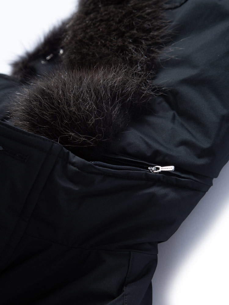 仕様 :外側ポケット数×4つ / 内側ポケット数×3つ / ダブルジップ / ラクーンファー / 防水・防風性 / フードの着脱可