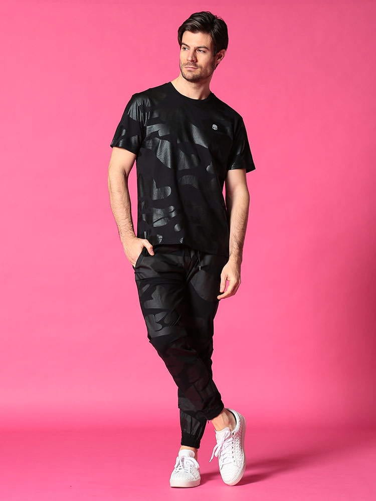・ワンポイントスカルがアクセントの迷彩柄 ロングパンツ