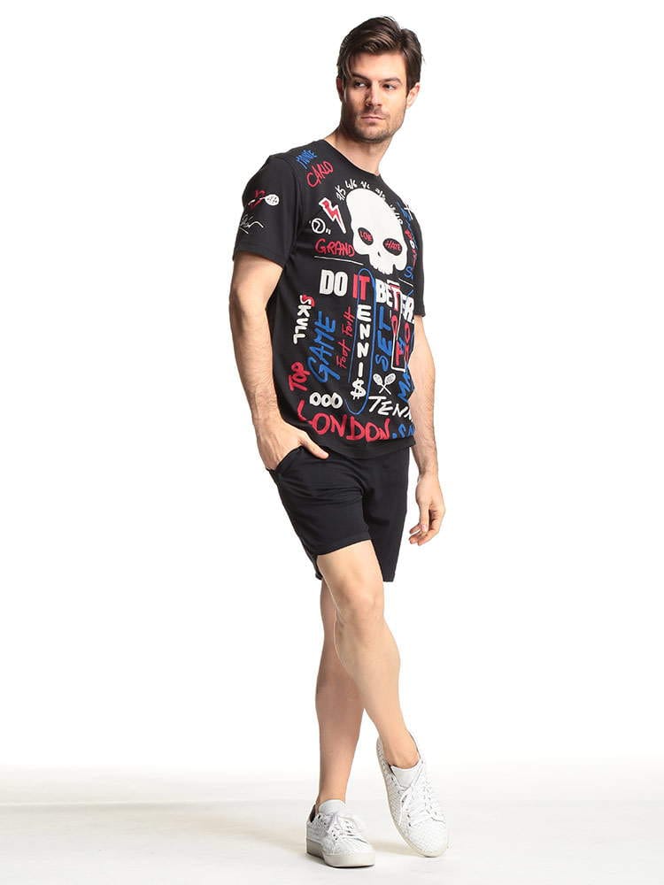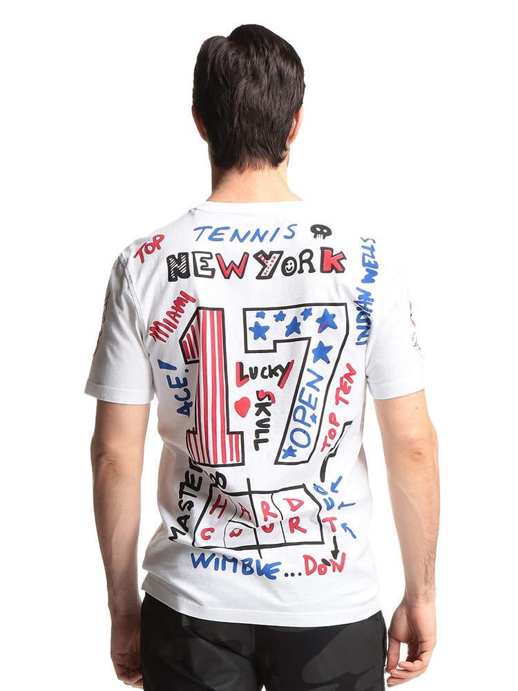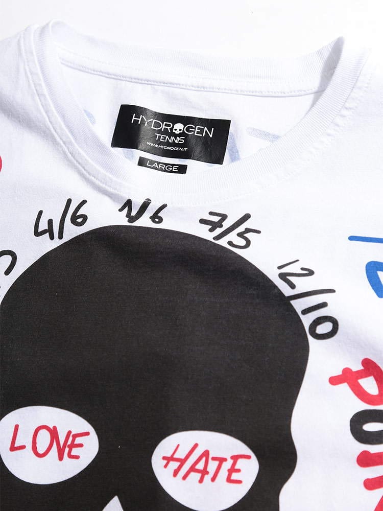 ・HYDROGENのテニスライン、スカル 総柄プリント クルーネック 半袖 Tシャツ