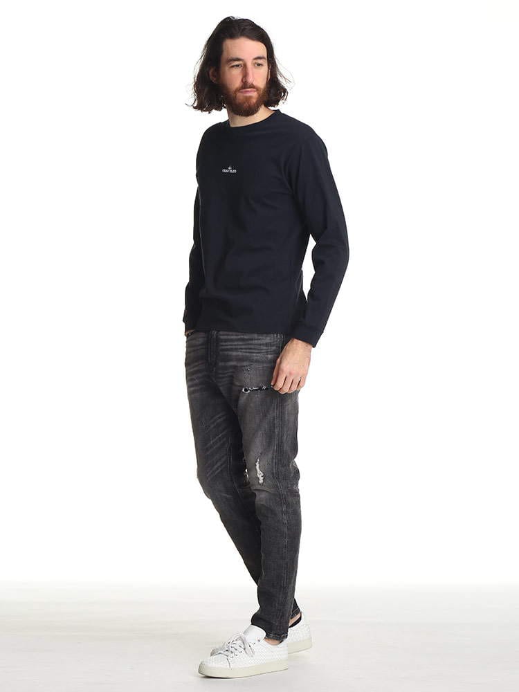 ・バックプリントがキャッチーなクルーネック 長袖 Tシャツ