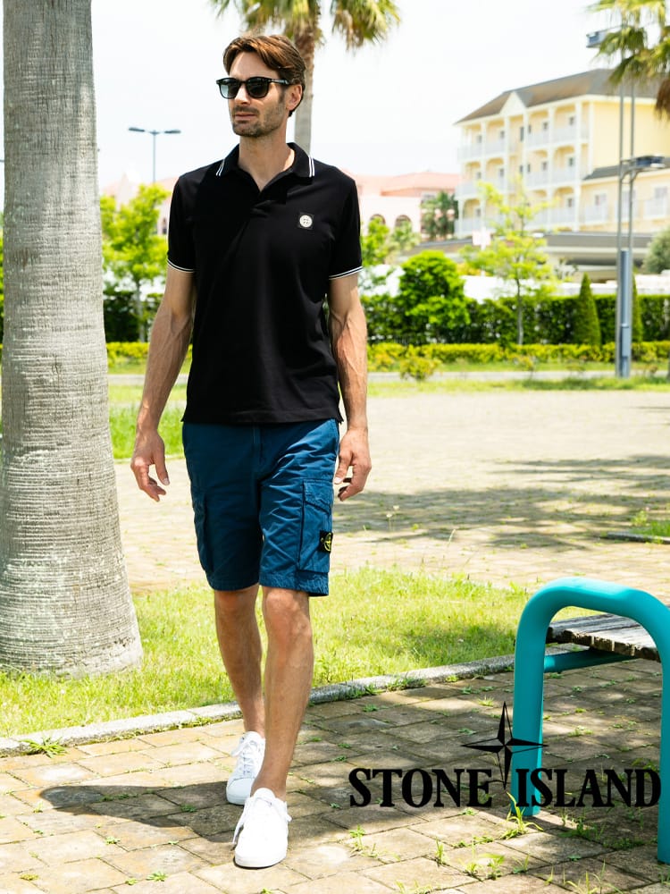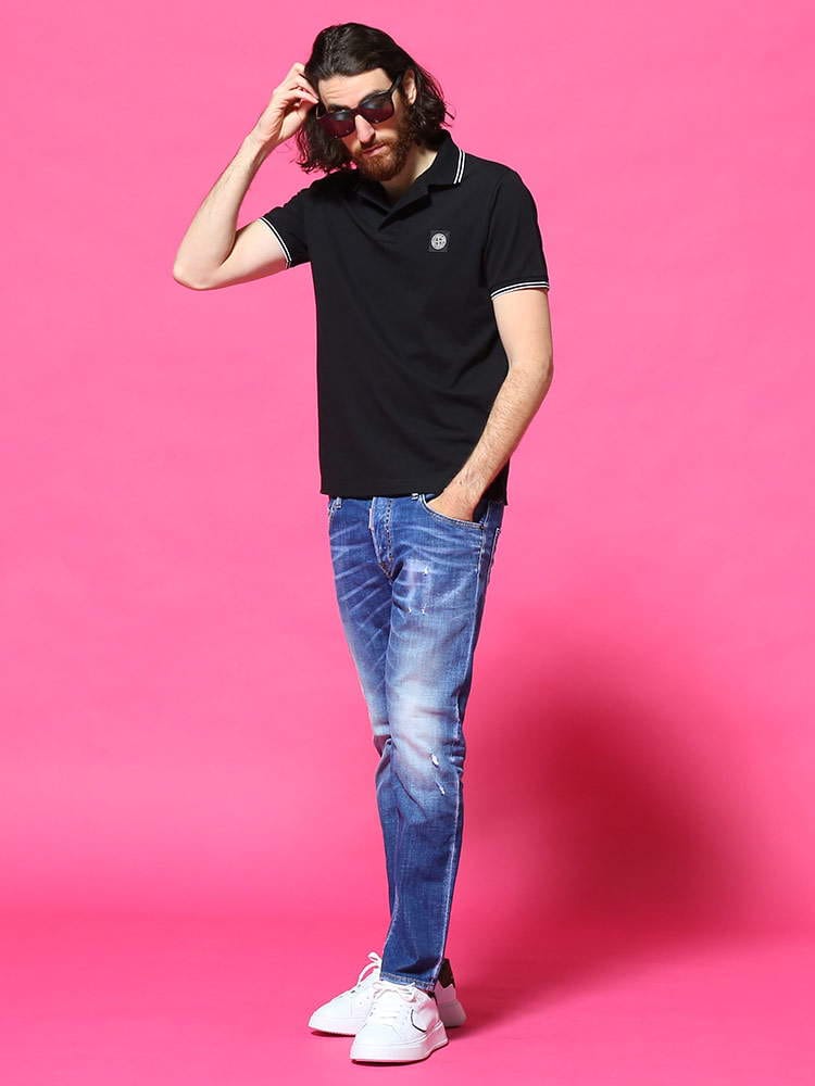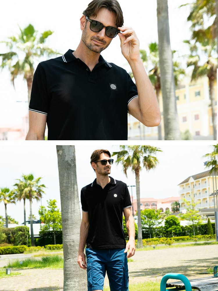 ・胸ロゴと襟と袖口のラインがポイントになった半袖 ポロシャツ