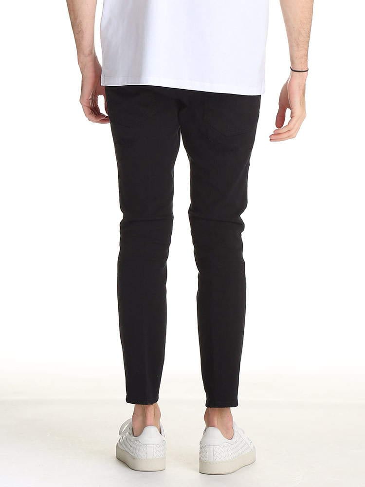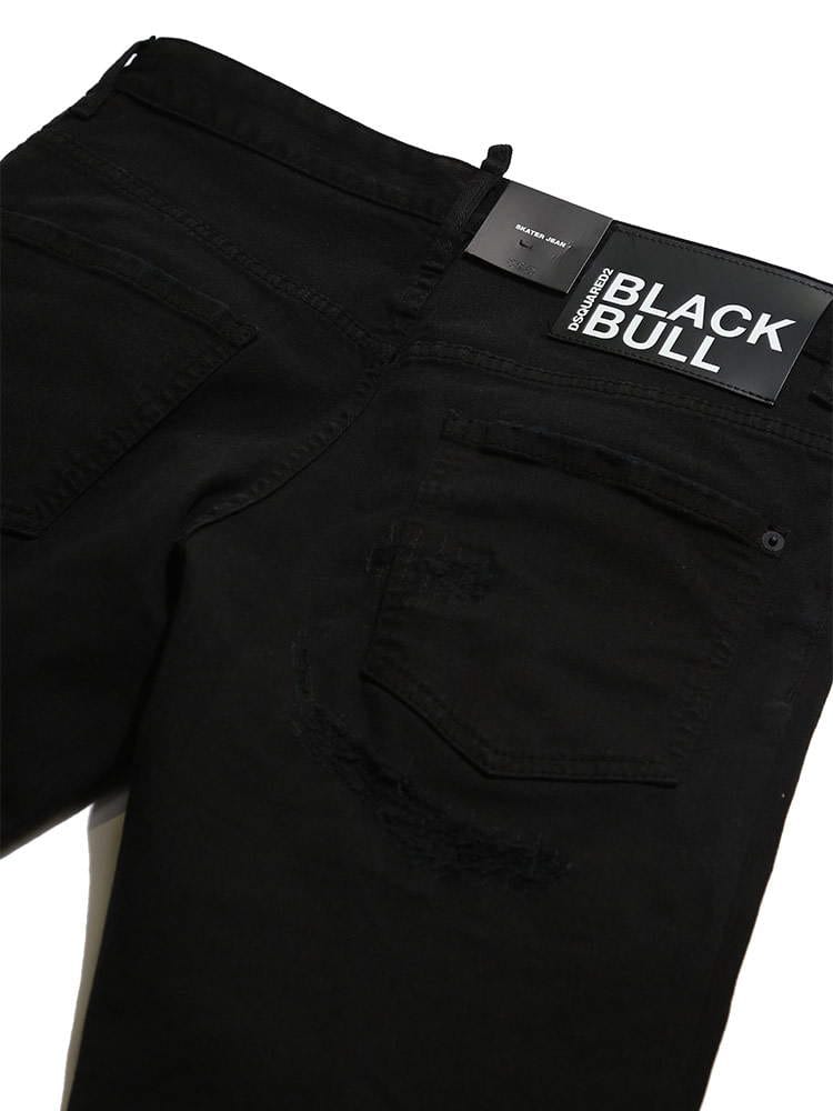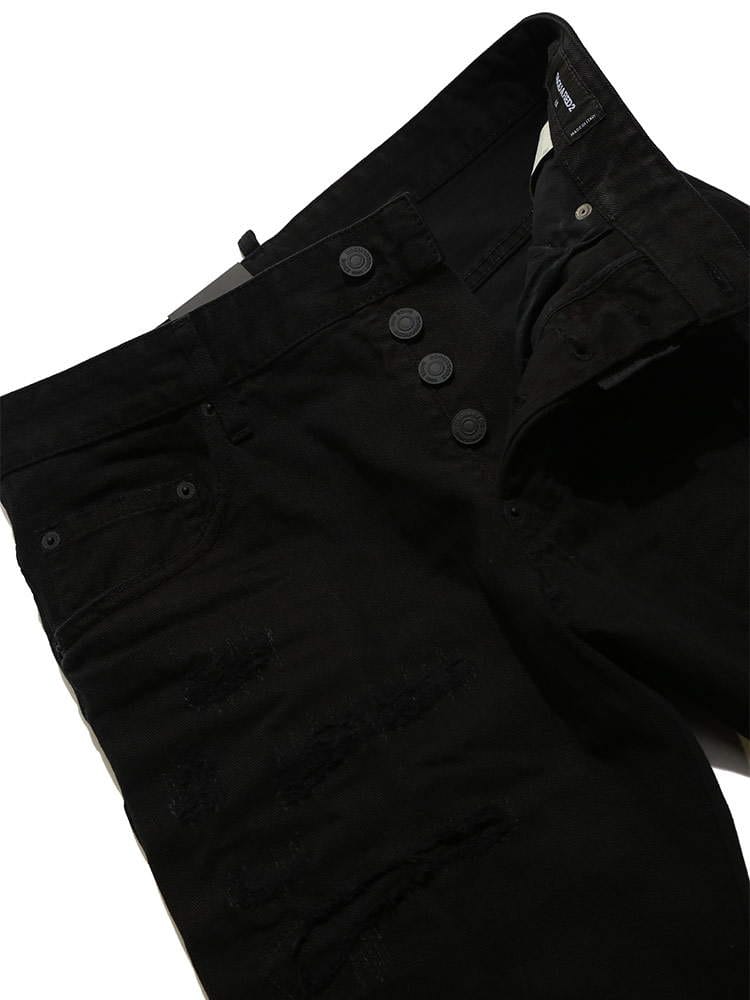 ・クールなダメージ加工を施したボタンフライ ブラックジーンズ SKATER