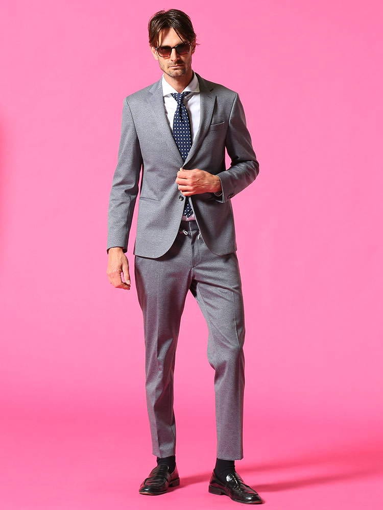 仕様 :外側ポケット数×7つ / 内側ポケット数×2つ / シングル2つボタン / 背抜き / セッパタイプ / 額縁あり / サイドベンツ / ウエスト調節ゴム / ジップフライ / ストレッチ