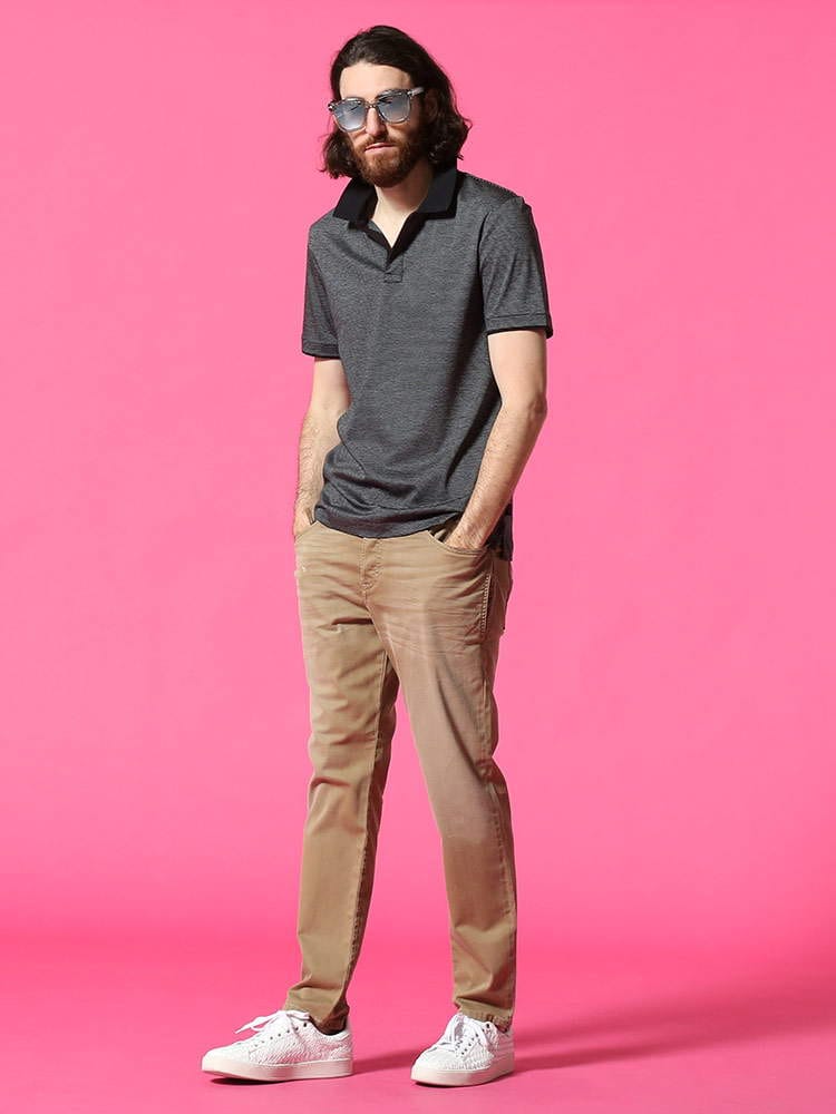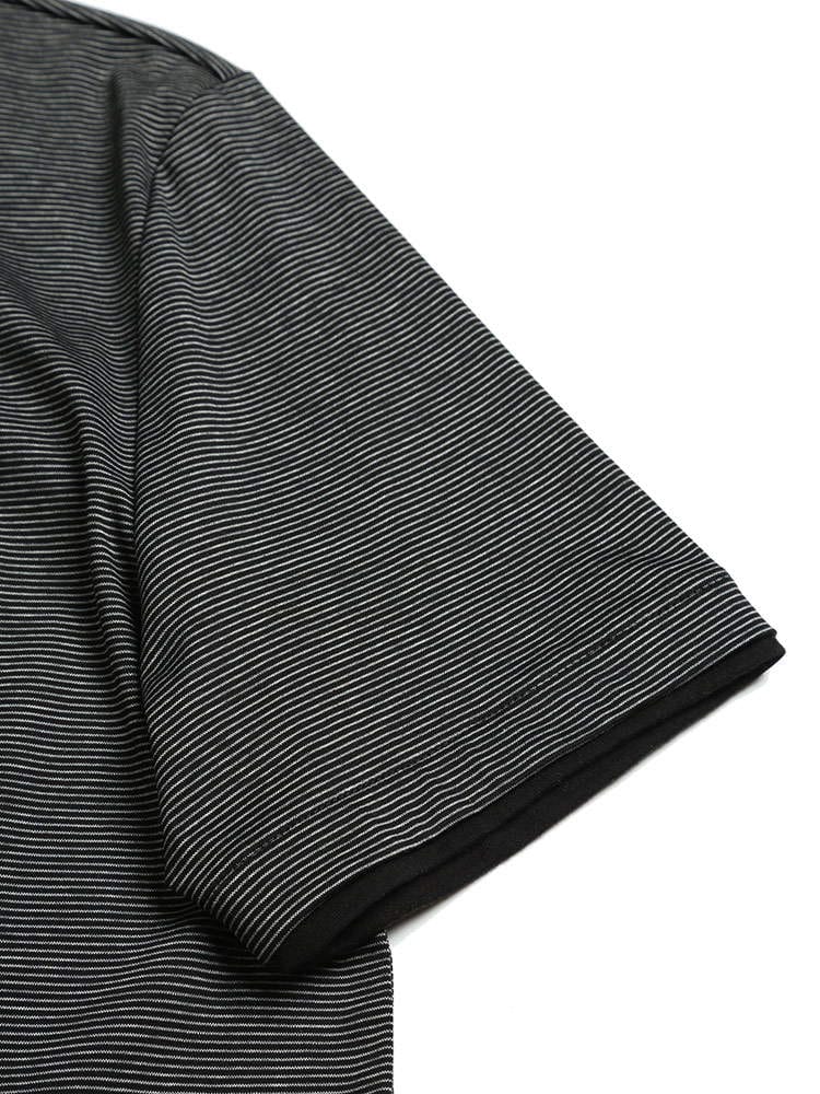 ・細ボーダーがスタイリッシュなリブ衿 半袖 ポロシャツ