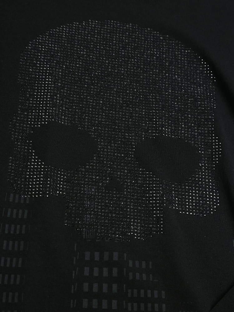 ・スカルビーズとプリントがポイントになったクルーネック 長袖 Tシャツ DOWNTOWN
