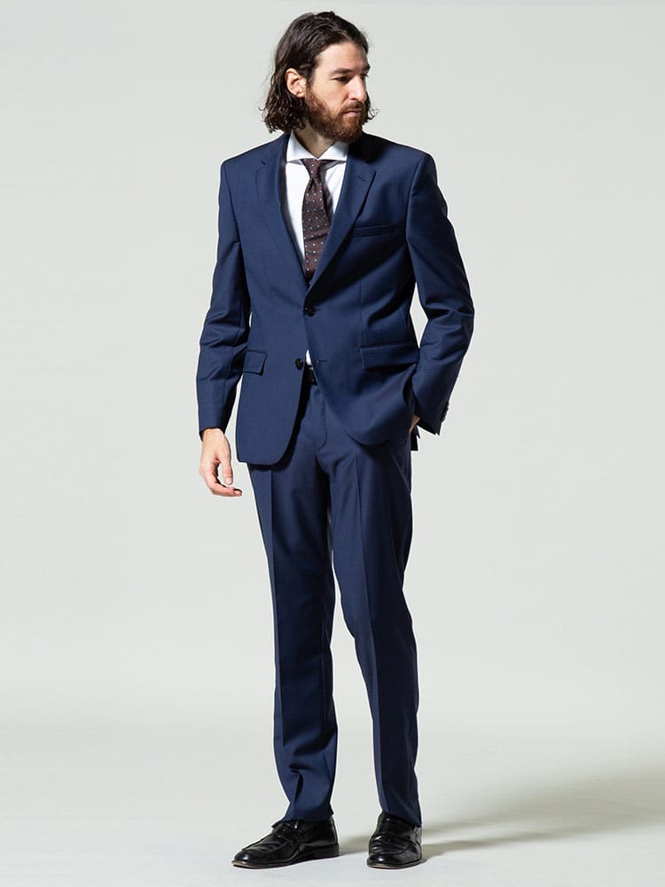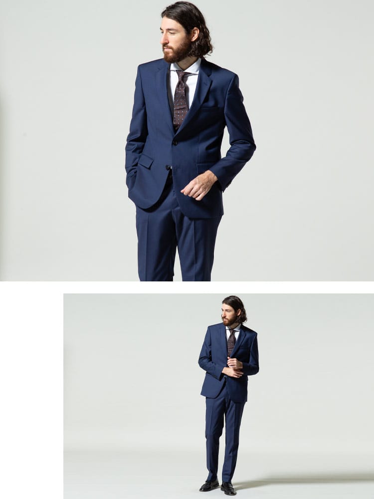 仕様 :アウター外側ポケット数×3つ / 内側ポケット数×2つ / シングル2つボタン / 総裏 / サイドベンツ / セッパタイプ / 額縁あり / パンツ外側ポケット数×4つ / ノータック
