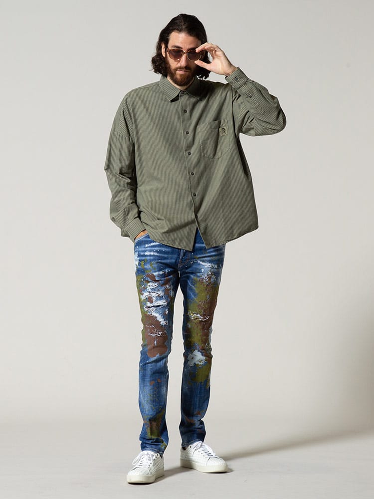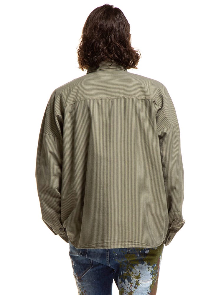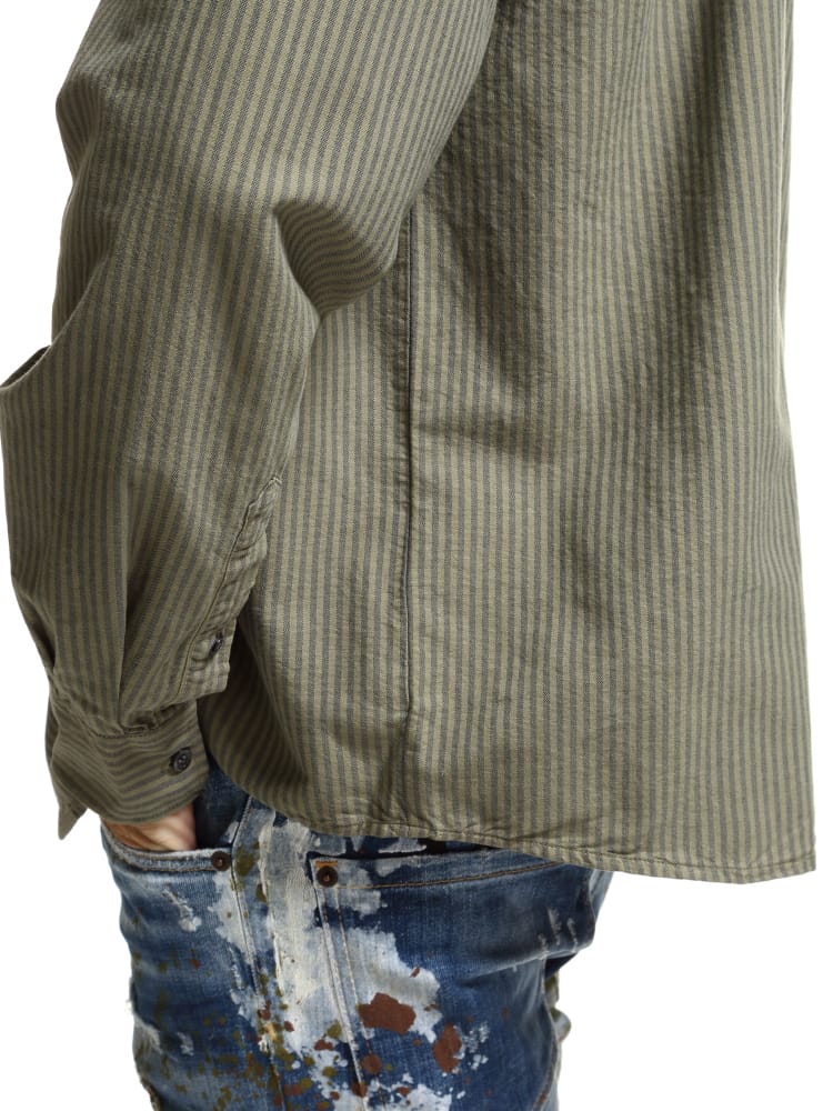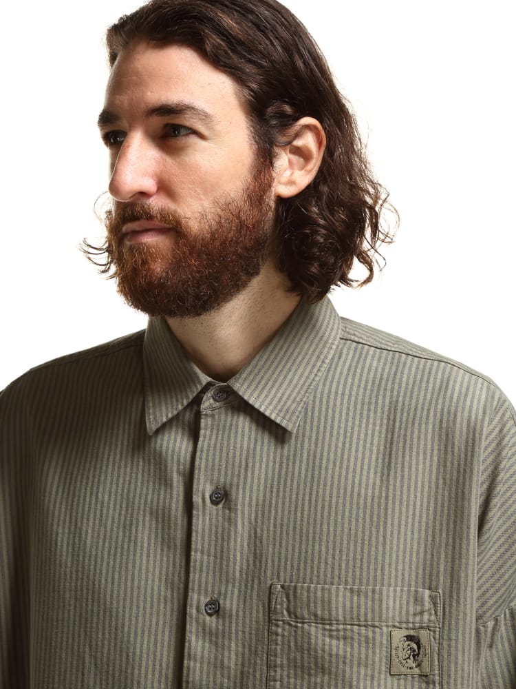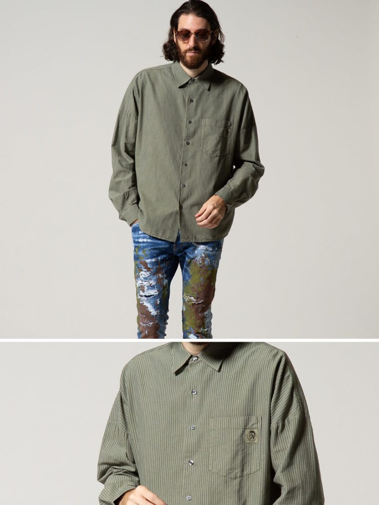 DIESEL (ディーゼル) コットン ストライプ ポケット 長袖 シャツ オーバーサイズ DSA02818QCAP