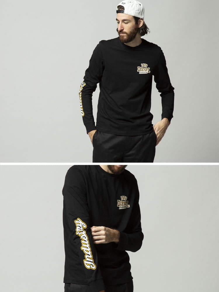 DIESEL ディーゼル カレッジ ロゴ クルーネック 長袖 Tシャツ ブランド メンズ トップス Tシャツ ロンT 長袖 DSA03368GRAI