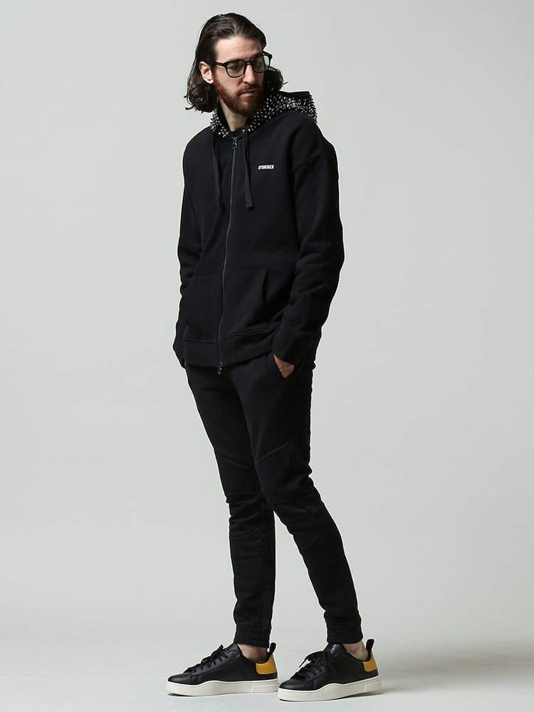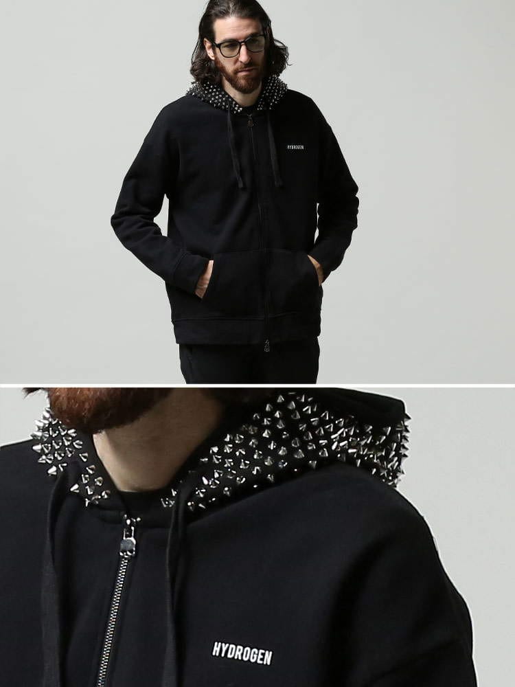 HYDROGEN (ハイドロゲン) 裏起毛 フードスタッズ フルジップ パーカー HY294624 メンズ スウェット