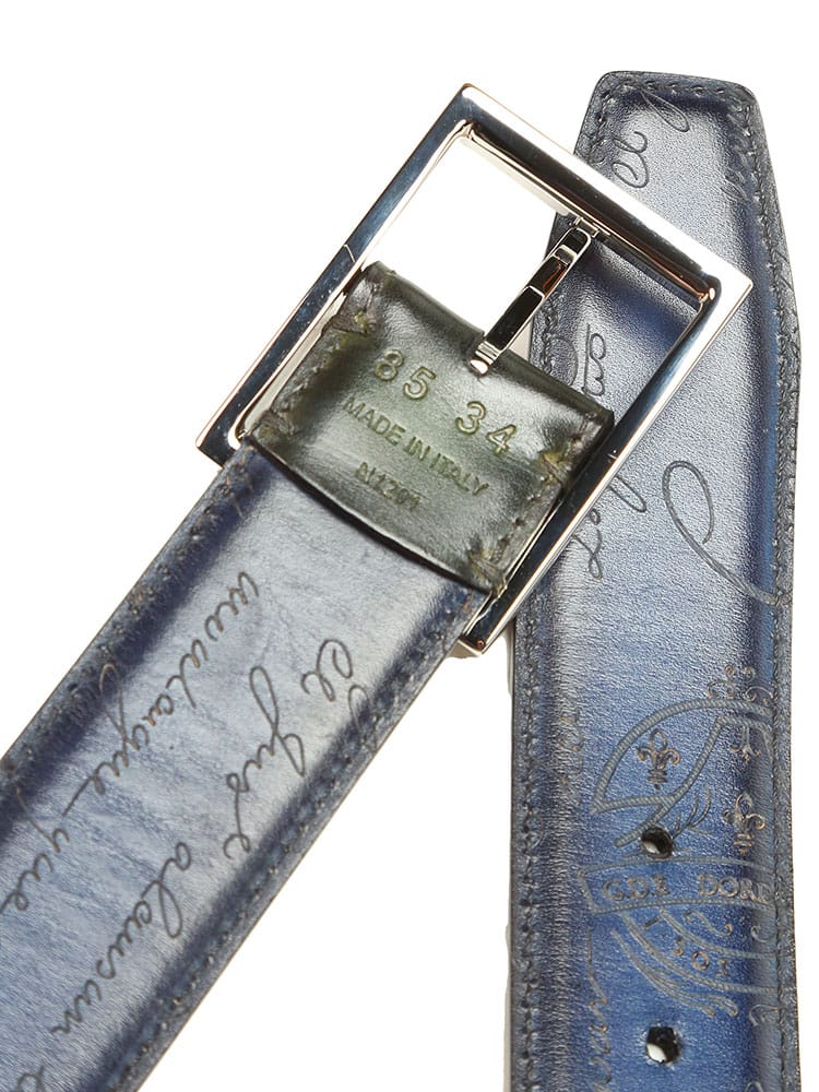 カリグラフィ(レザーの表面に文字を刻んだ柄)が施されたBerlutiの革製品は一つ一つ手作業で彫り込まれているのが特徴で、同じ商品でも一点ずつ仕上がりが異なります。刻まれた文字も模様も1つとして同じものがない、自分だけの特別感が味わえるアイテムです。