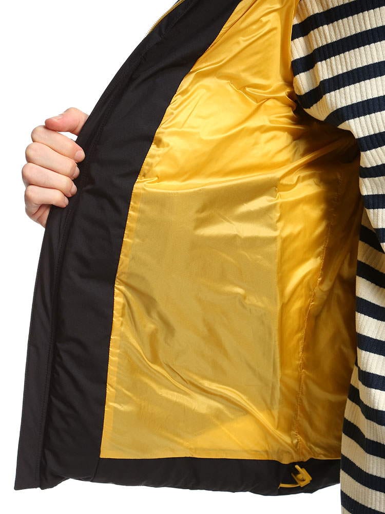 素材 :[表地]ポリエステル100% [裏地]ナイロン100% [メッシュ]ナイロン73% ポリウレタン27% [中綿]ダウン80% フェザー20%
