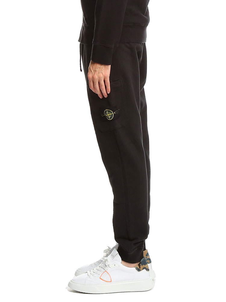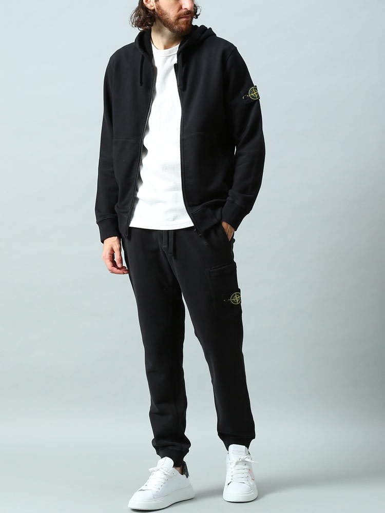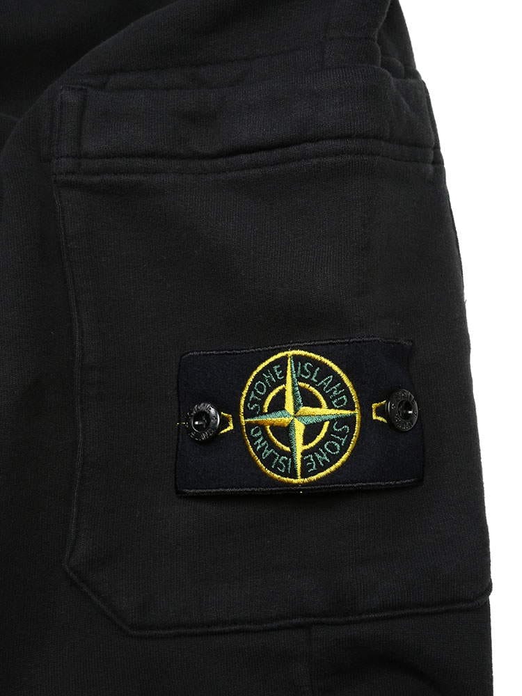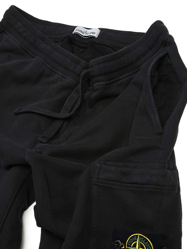 ガーメントダイで起毛仕上げのコットンスウェット製ジョギングカーゴパンツ。スリムフィットでスポーティーにもカジュアルにも合わせ易い1本です。スリットポケット付き。バックには、隠しスナップボタンで開閉するスリットポケット1つ。左脚にStone Islandのバッジがあしらわれたファスナー開閉のパッチポケットが付いています。ウエストと脚の内側にステッチ入り。ウエストはリブ編みで、ドローストリングが通っています。ファスナー開閉。裾はリブ編み仕上げ。