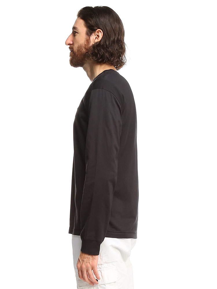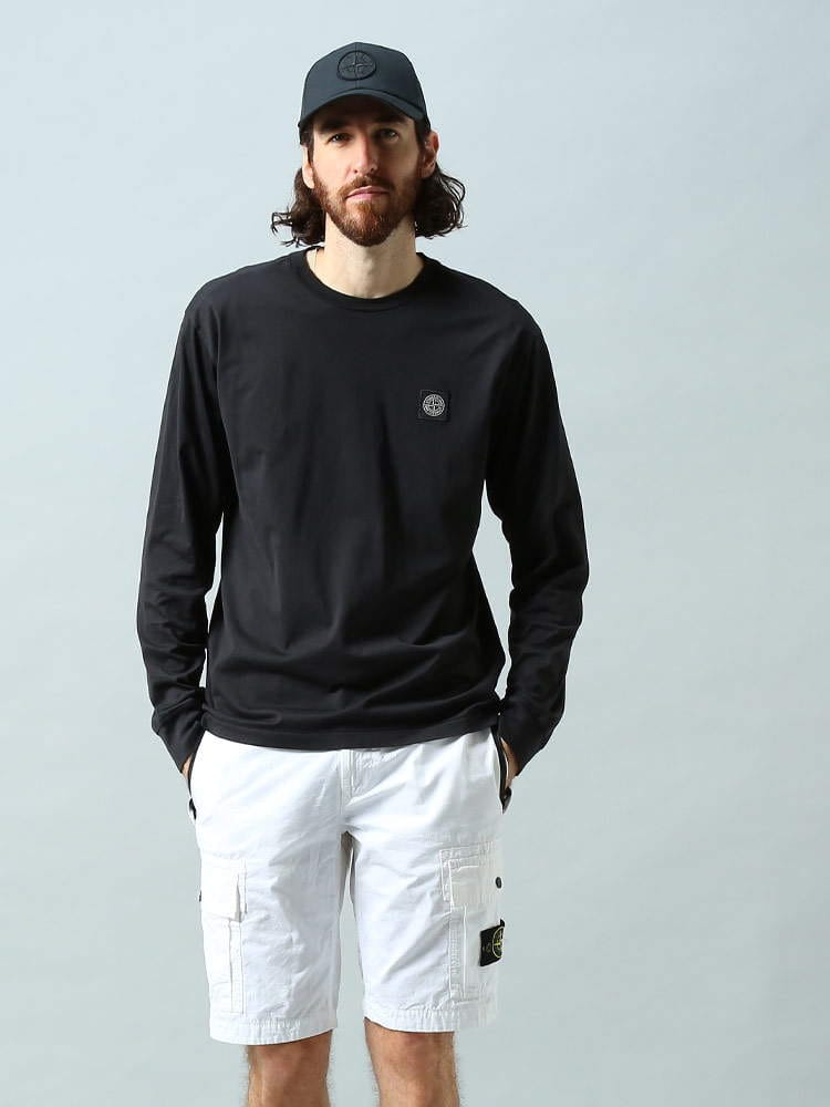 ガーメントダイのコットンジャージー製のロングスリーブTシャツ。ネックラインはリブ編みで胸元にStone Islandのロゴであるコンパスのパッチ付き。袖口は細いリブ編み。裾はチェーンステッチ仕上げです。シンプルですがこれ1枚で大人っぽい着こなしができる1枚です!スリムフィットですが171cm,60kgのスタッフはSサイズでジャストサイズでした。【スタッフO】
