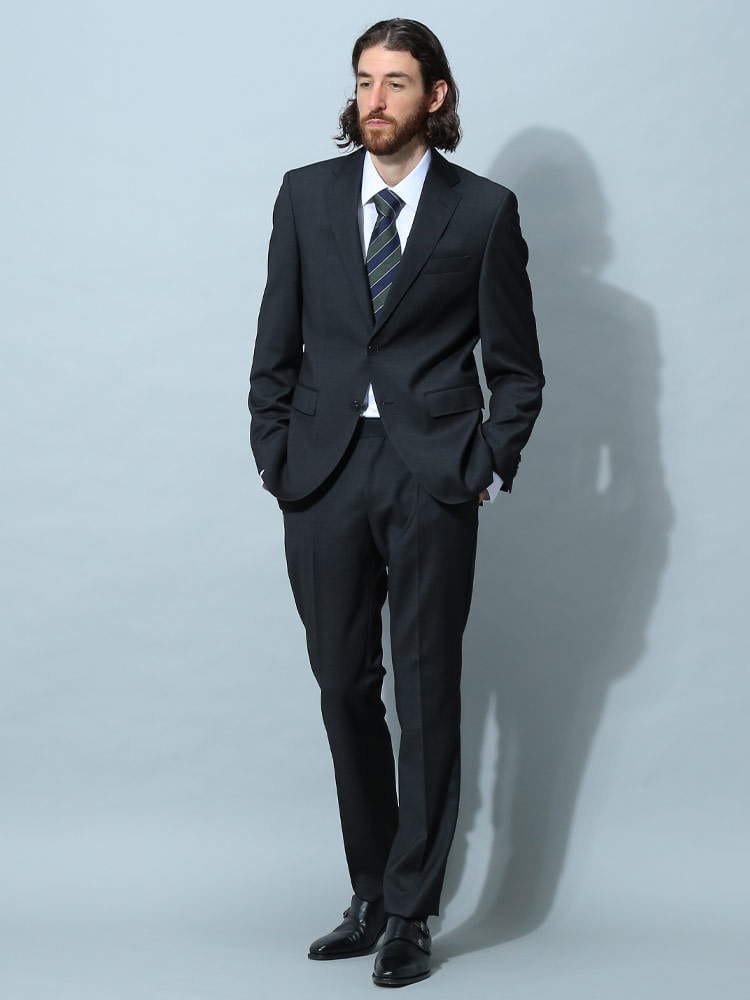 仕様 :ジャケット外側ポケット数×3つ / 内側ポケット数×2つ / パンツ外側ポケット数×4つ / ノータック / シングル2つボタン / 総裏 / サイドベンツ / 額縁あり / セッパタイプ