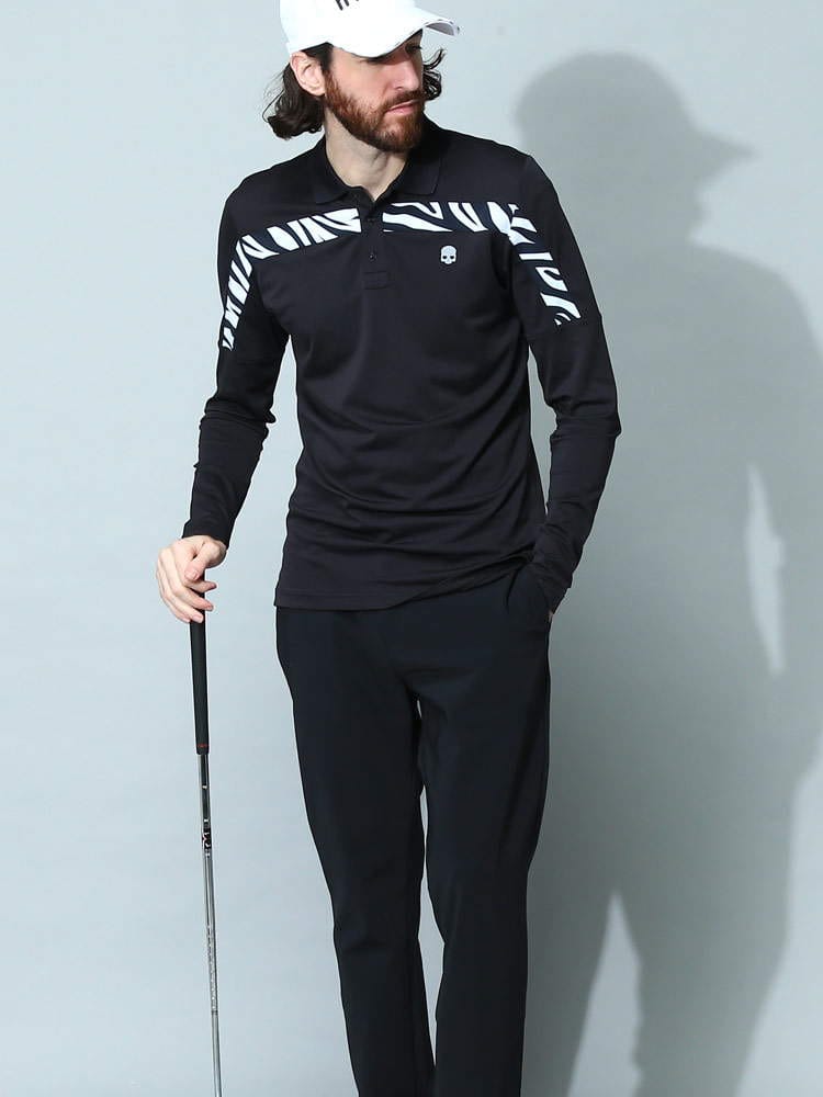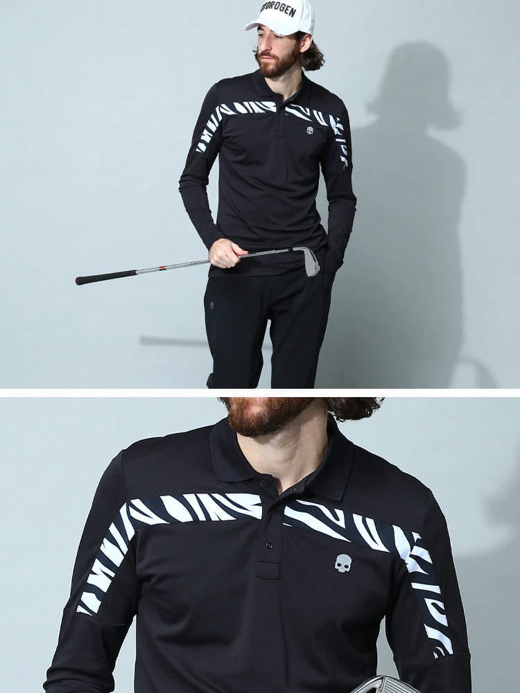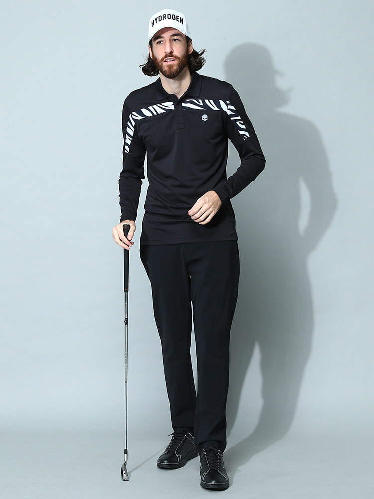 HYDROGEN GOLF LINEになります。通気性に優れたHYDROGEN独自のナイロン生地を使用したゴルフポロシャツ。シルクのような滑らかな触り心地と、ストレッチの効いた快適な着心地が特徴です。ゼブラのラインがアクセントのHYDROGENならではの1着。