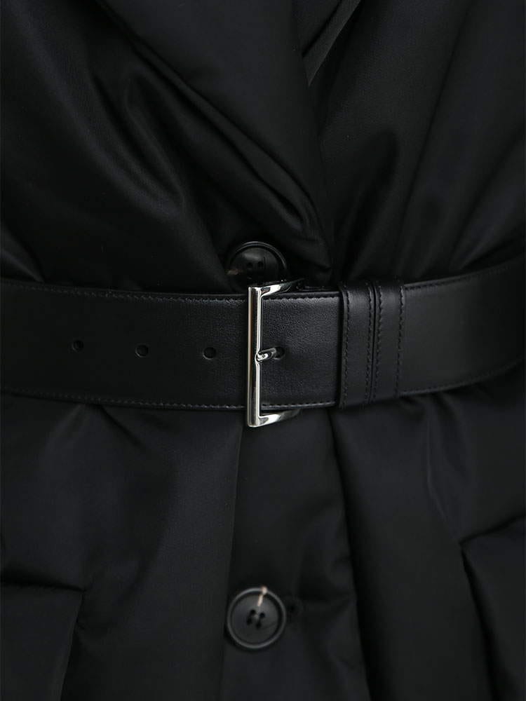 素材 :[表地]ポリアミド100% [裏地]ポリアミド100% [詰物]ポリエステル43% リサイクルポリエステル35% ダウン22% [ベルト]子牛革
