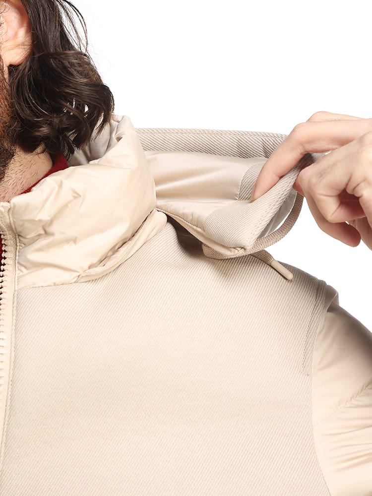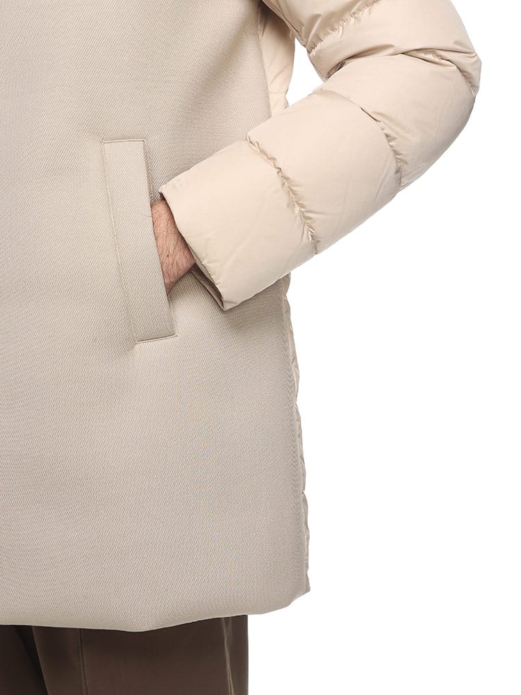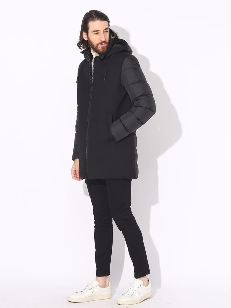 素材 :[表地]ナイロン100% [別布]レーヨン100% [別布2]ポリウレタン [別布3]ポリエステル100% [裏地]ナイロン100% [フード部分]ポリエステル100% [詰物]ダウン80% フェザー20%