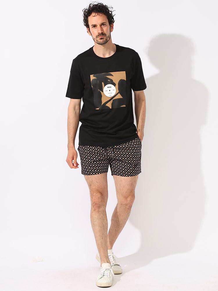 フロントにグラフィカルなアートワークプリントが施されたHUGO BOSSSの半袖Tシャツです。