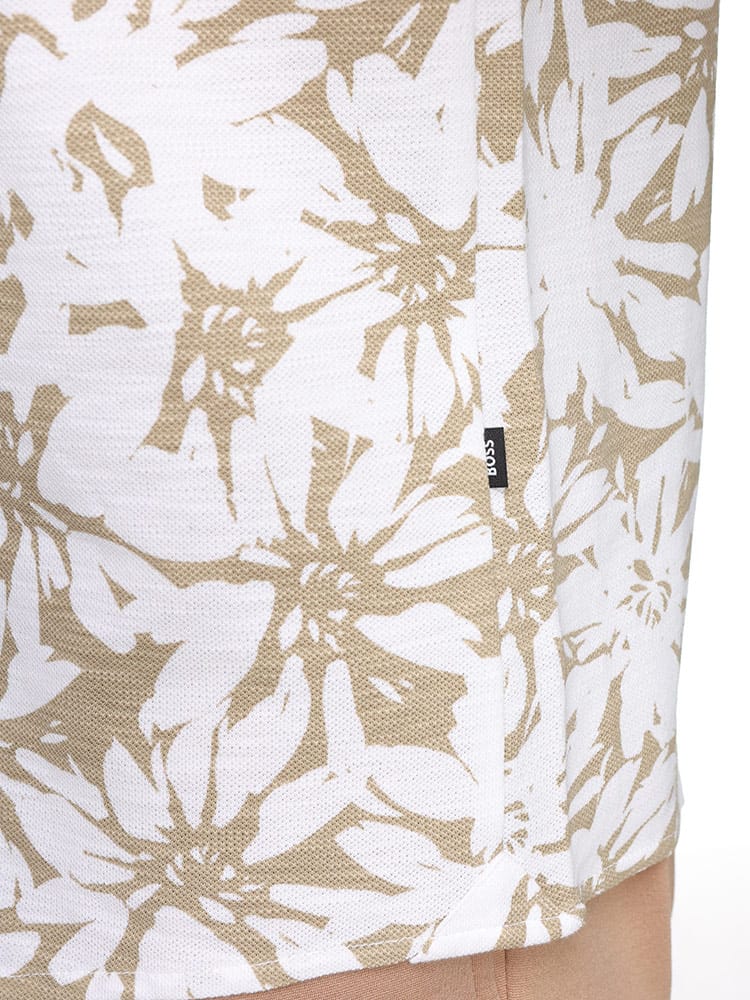 HUGO BOSSのスリムフィットデザインの半袖シャツ。快適なコットンジャージー素材を使用し、洗練された花柄が特徴。カジュアルながらも上品な印象を与えるため、さまざまなシーンで活躍します。
